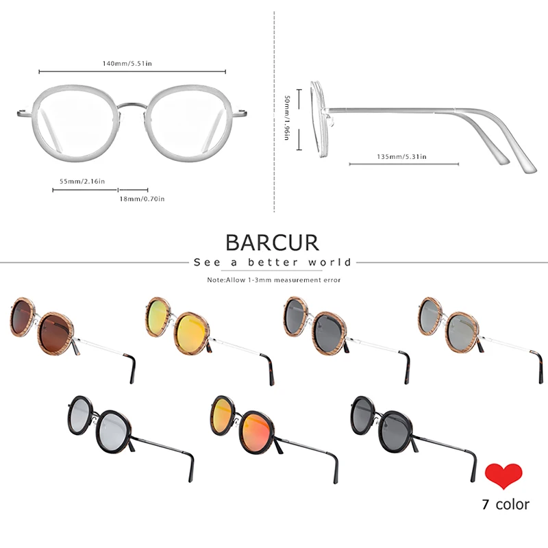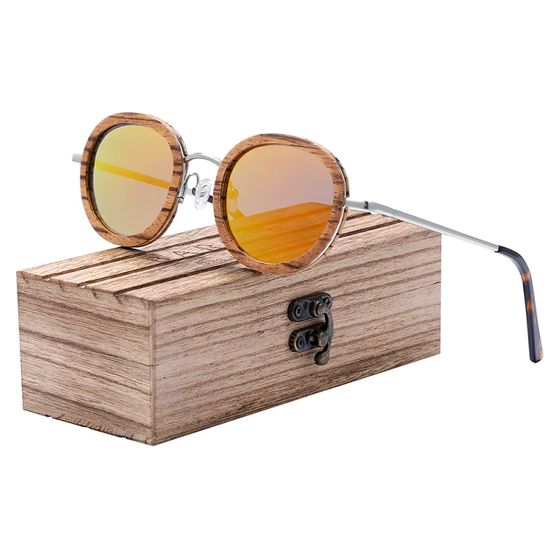 Солнцезащитные очки BARCUR поляризационные, круглые, из ореховой древесины, с защитой UV400, для мужчин и женщин