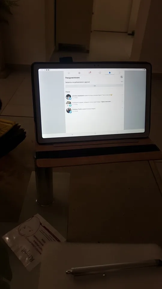 Пришел более чем через мясяц, с 16.12 по 23.01, может если б не праздники, доставка была б быстрее. Чехол понравился красивый, мягкий, четко встал планшет, ничего не болтается. В подарок положили стилус с мягким наконечником.
