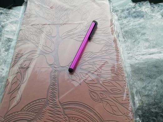 Чехол очень красивый, я в восторге. Предлагается стилус, он прибыл поврежден, но упаковка была очень хорошей. Маленькая часть чехла была оторвана, когда я подняла планшет вертикально. Я все еще в восторге от своей покупки, узор и цвет очень красивые