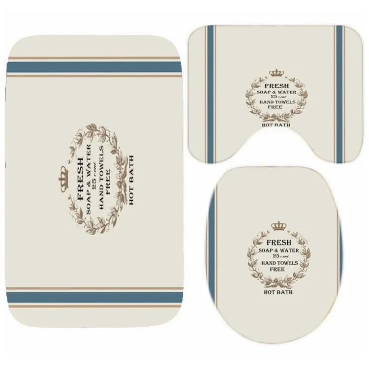 2)Размеры:Прямоугольный Коврик: 45 см x 75 см; U-образный коврик: 40 см x 50 см; Чехол для унитаза: 35 см x 45 см