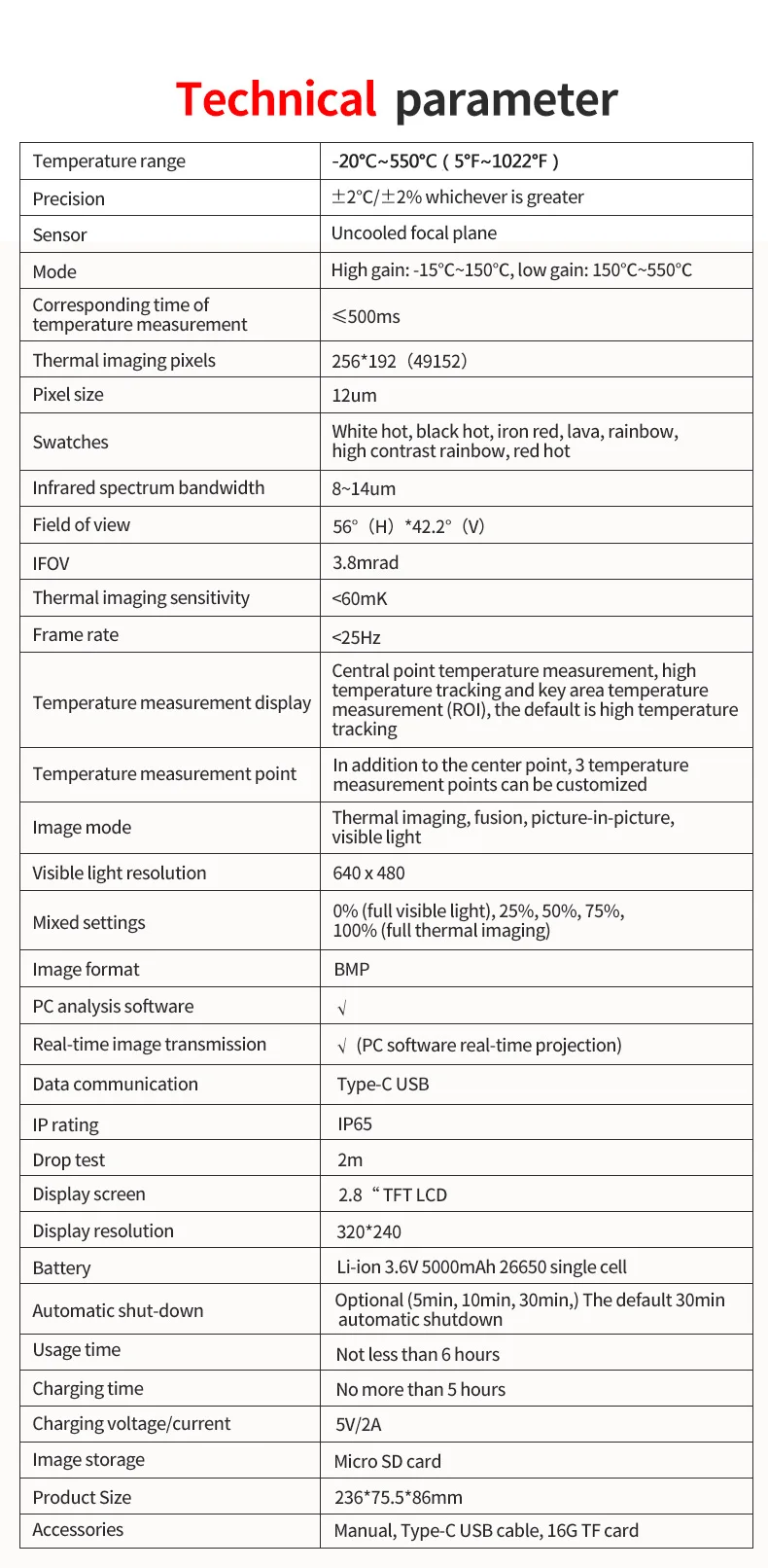 Инфракрасный Тепловизор с разрешением 256x192, ручной тепловизор, инфракрасный термометр (включая батарею)