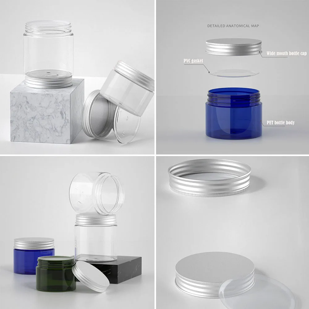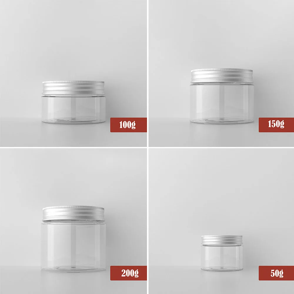 Баночка пластиковая прозрачная пустая для макияжа с алюминиевой крышкой, многоразовые Бутылочки для образцов, дорожный крем-лосьон для лица для косметики, 50-250 г