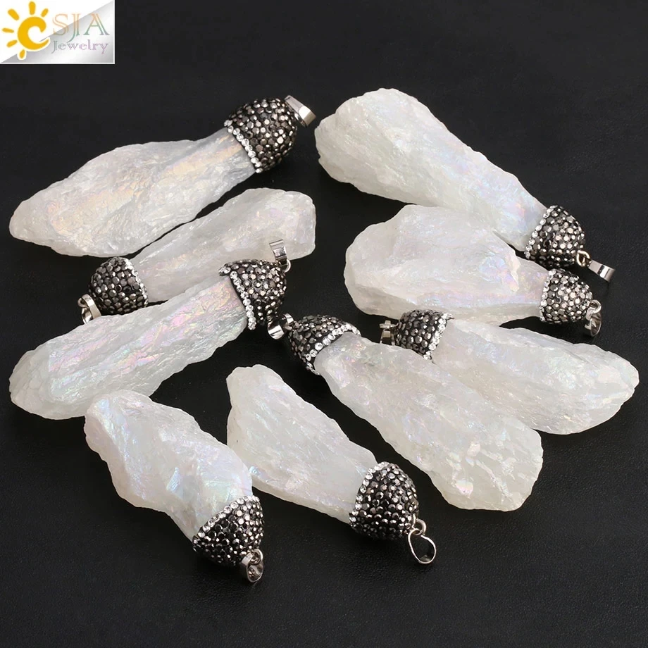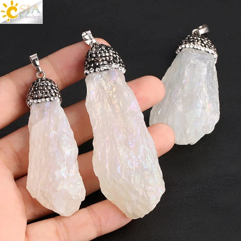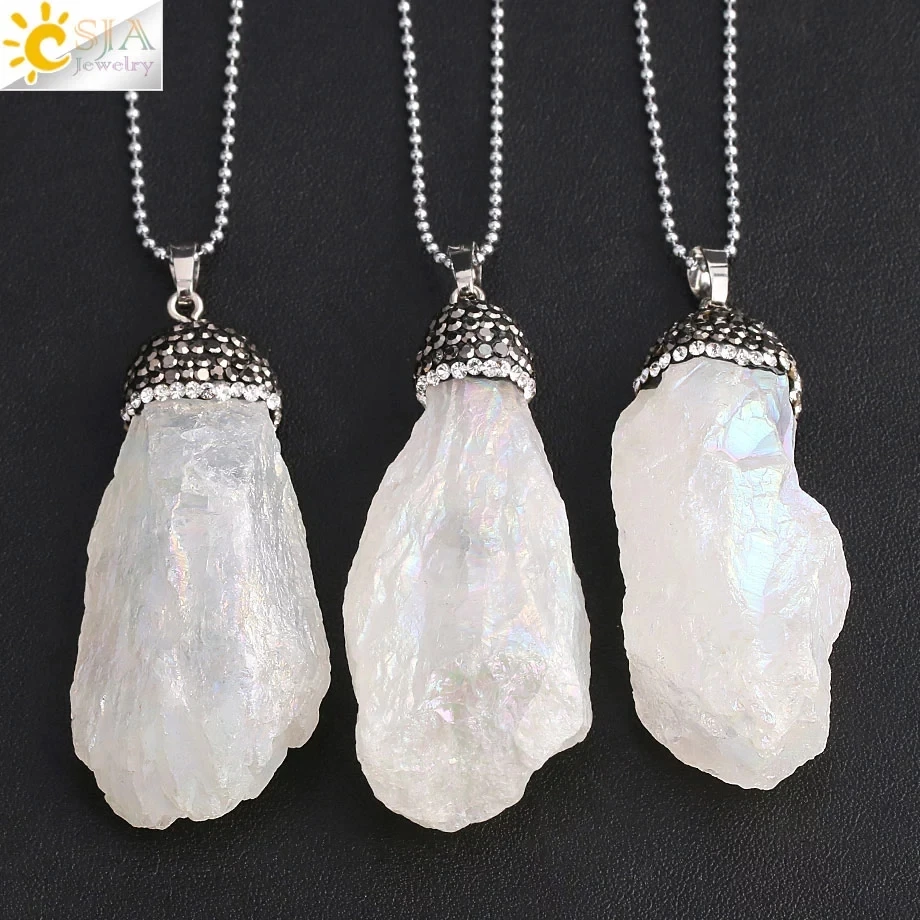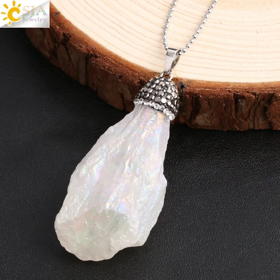 CSJA ожерелье с подвеской из натурального кристалла, неравномерное прозрачное ожерелье из белого кварца с цирконием, женские и мужские ювелирные изделия, размер случайного выбора G079