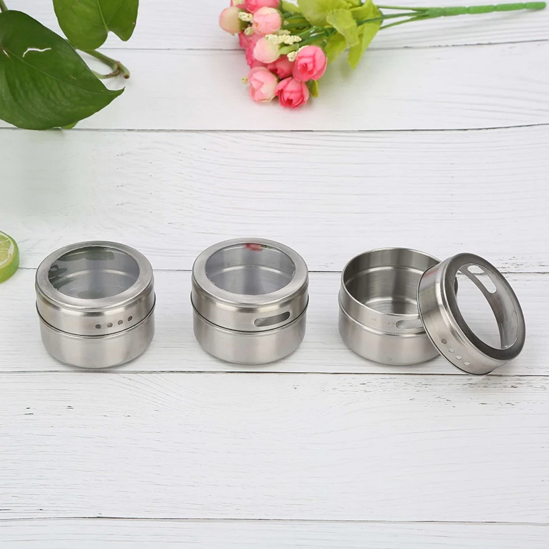 2468 шт. Прозрачная крышка Магнитная жестяная банка для специй из н...