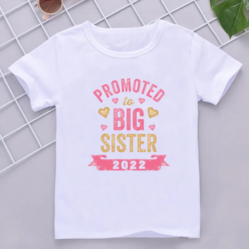 Детская футболка с коротким рукавом, летняя белая футболка с буквенным принтом для старшей сестры, 2021