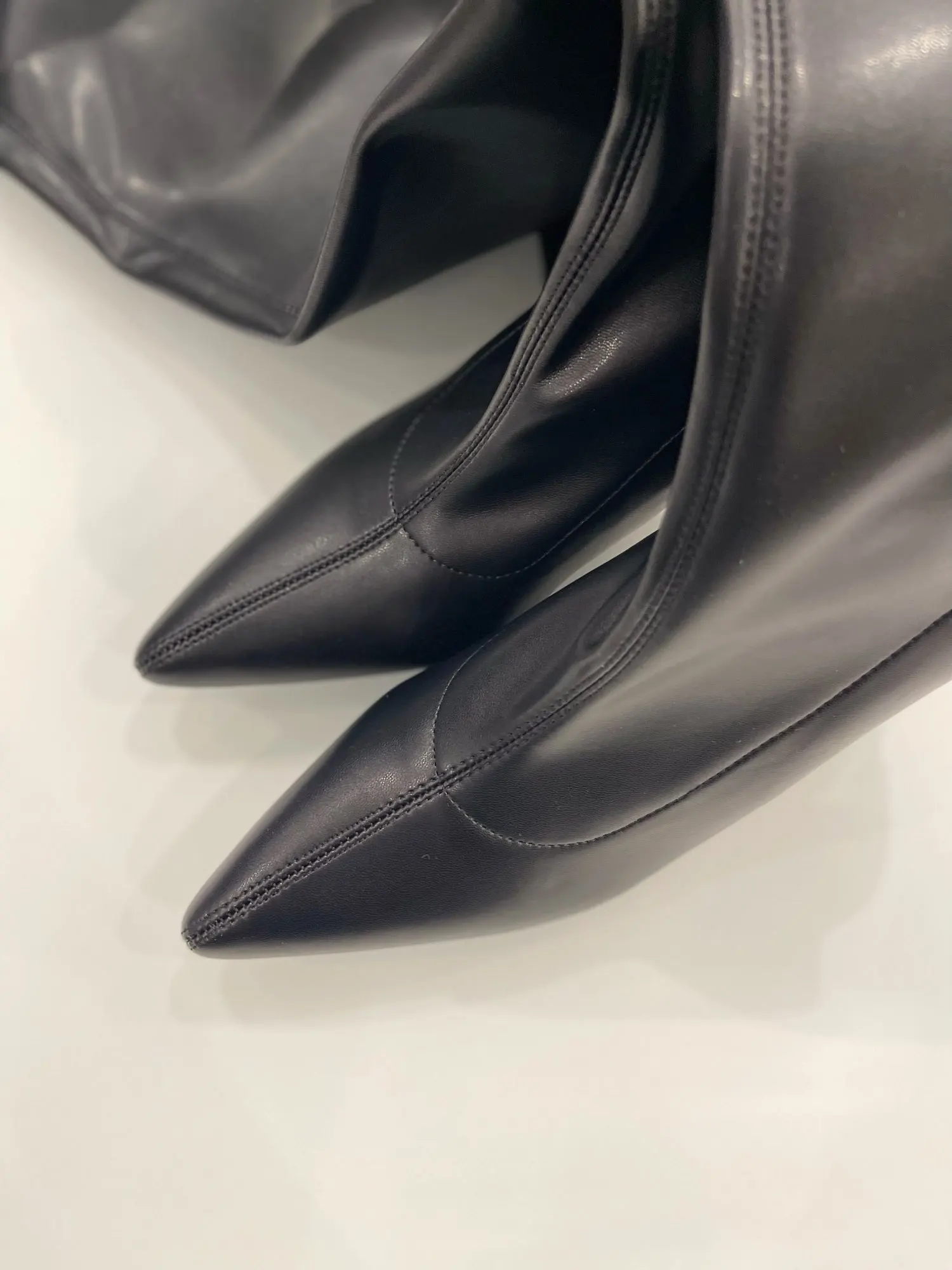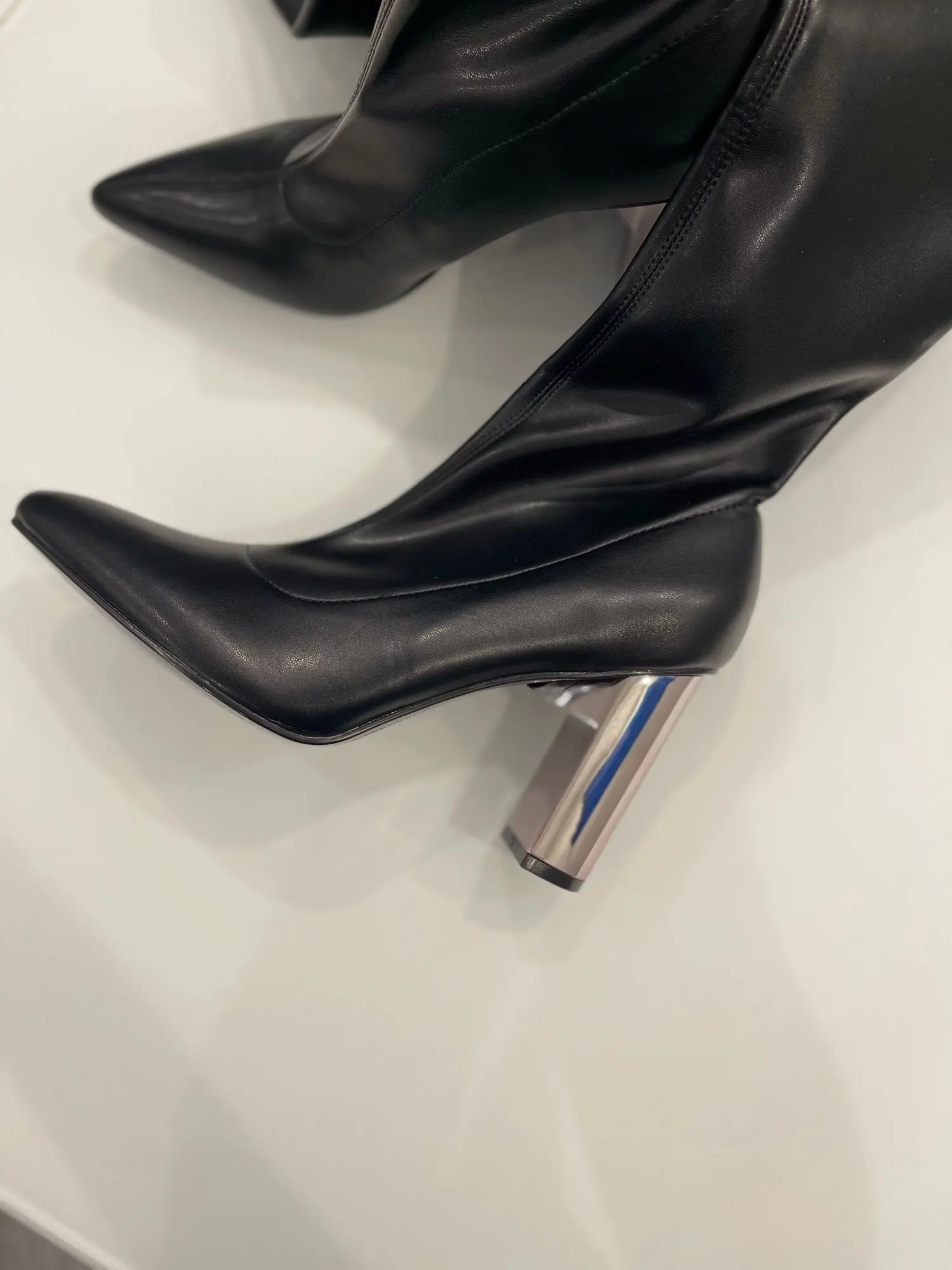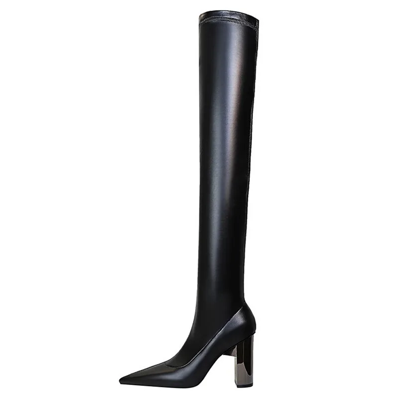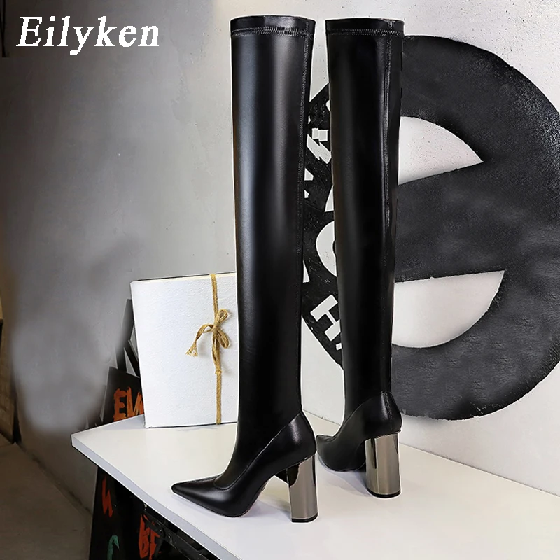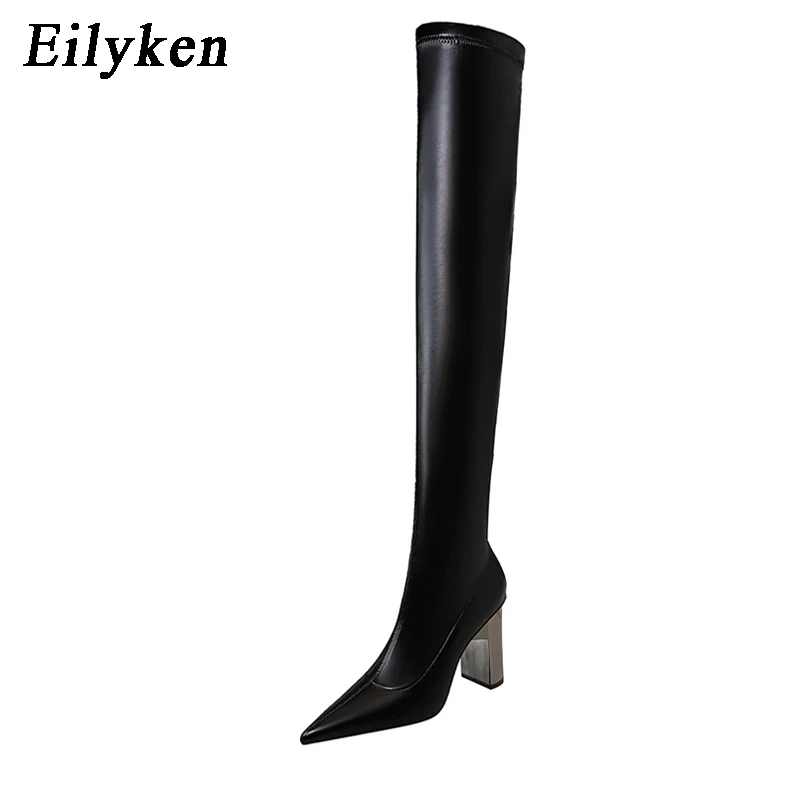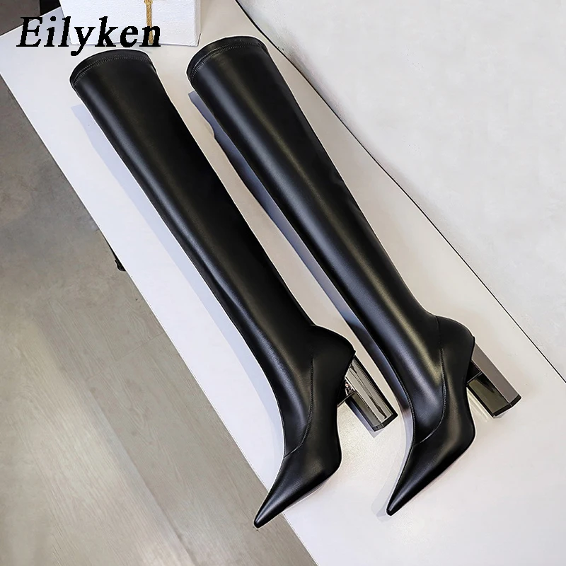 Eilyken2022 г.; Брендовая Модная элегантная женская обувь до бедра; Пикантные мотоботы выше колена с острым носком; Женские туфли-лодочки на квадратном каблуке
