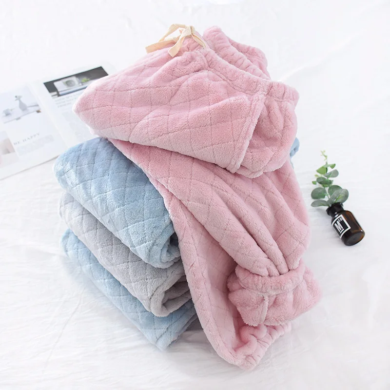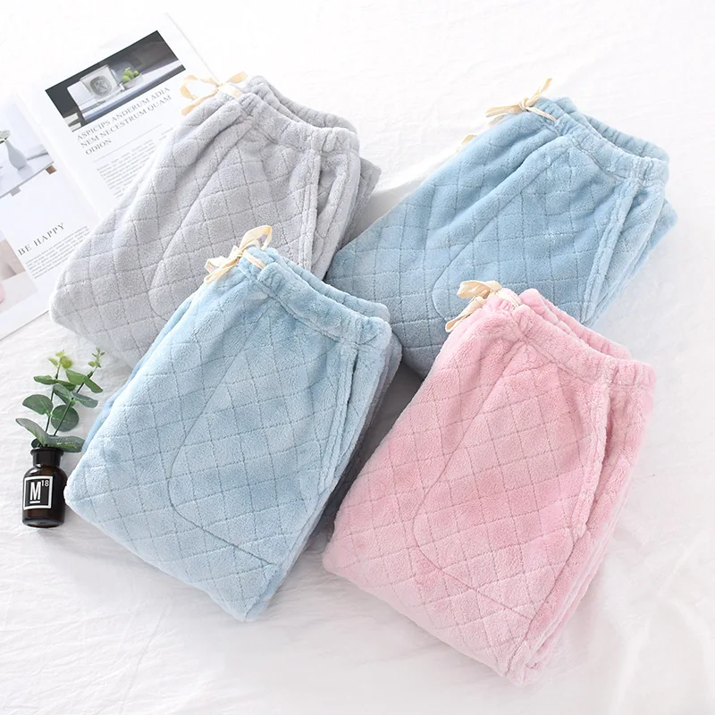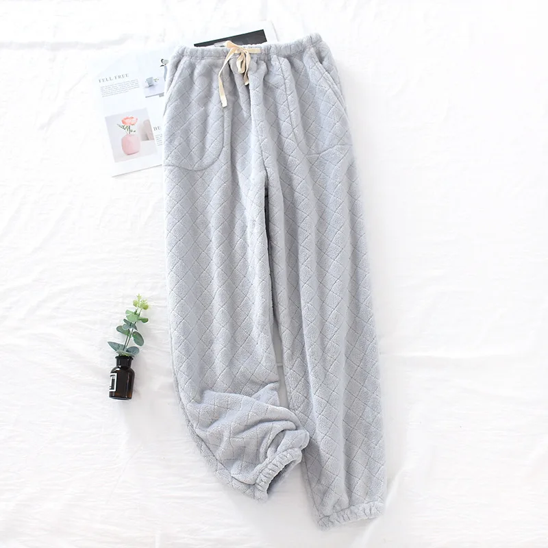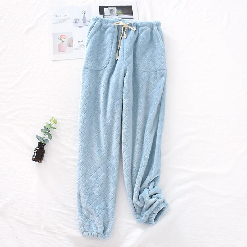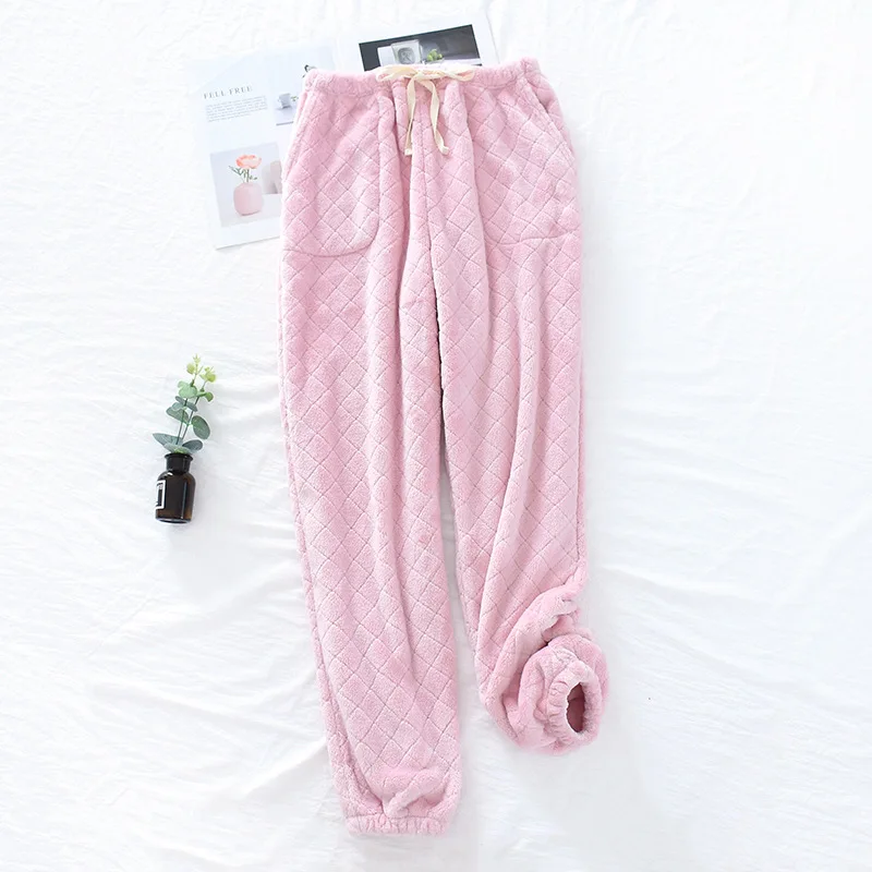 Зимние теплые плотные плюшевые женские штаны Fdfklak, Повседневная Пижама с карманами, свободные Фланелевые брюки с высокой талией, домашняя одежда для сна