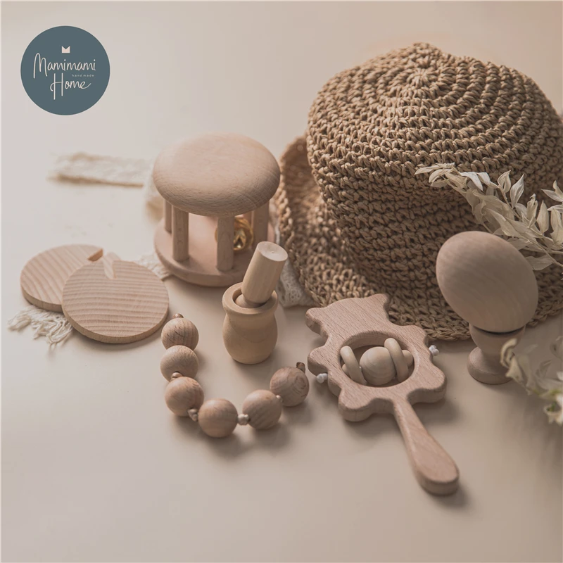 1 комплект, детская деревянная игрушка-грызунок из бука и жемчуга