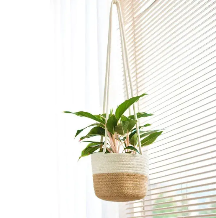 Подвесное кашпо, плетеная корзина для растений с джутом и хлопковым...