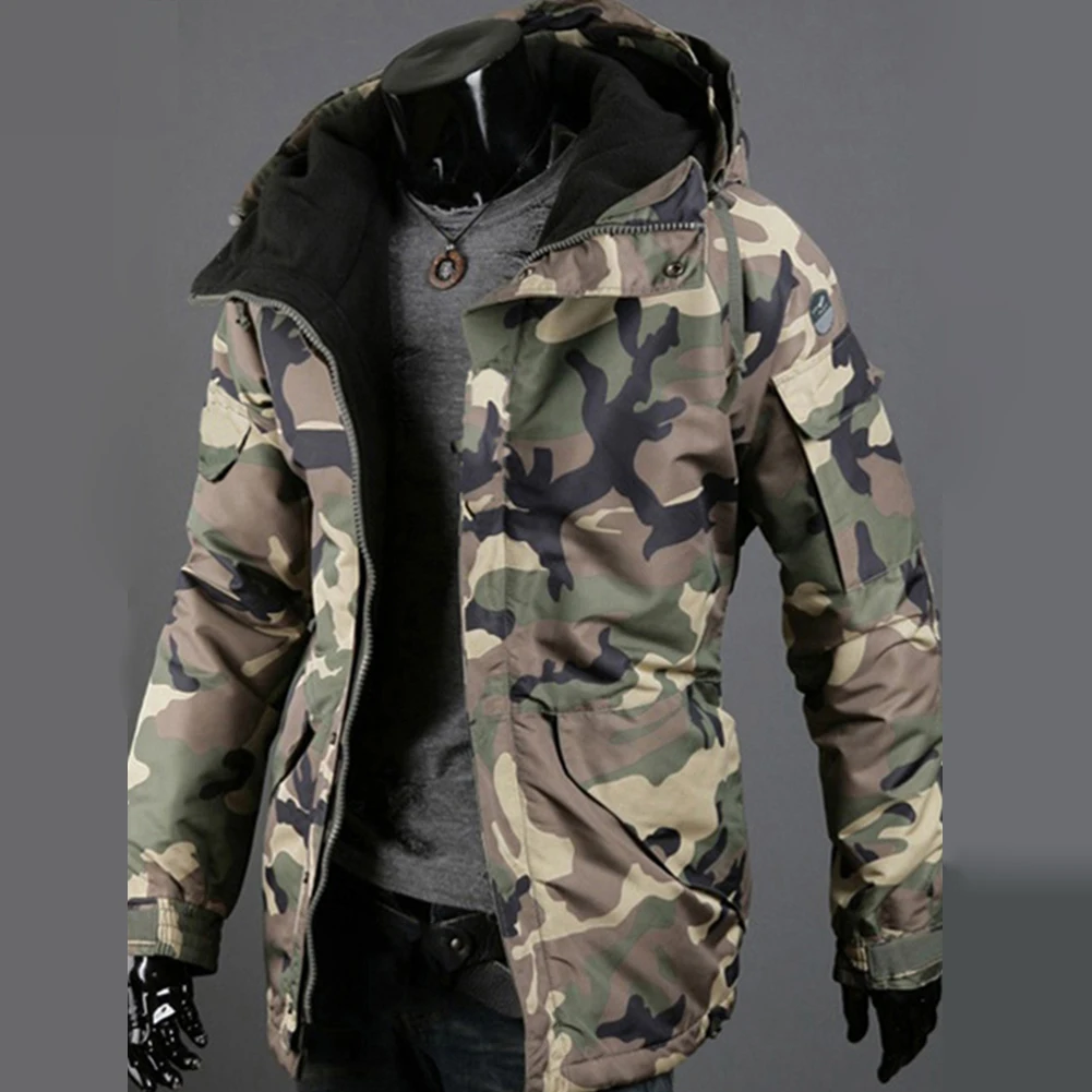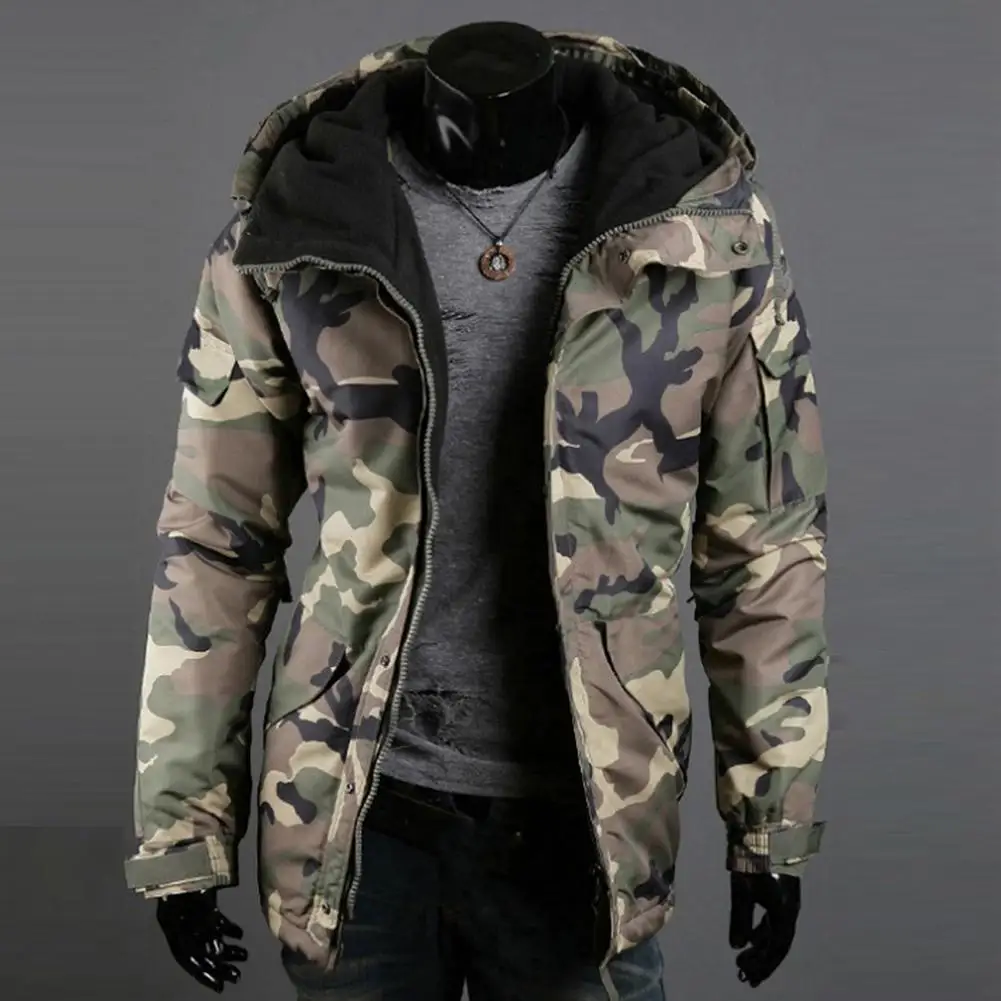 Модная зимняя теплая мужская куртка, пальто с камуфляжным принтом и карманами, куртка на молнии с длинным рукавом, пальто для мужчин, одежда