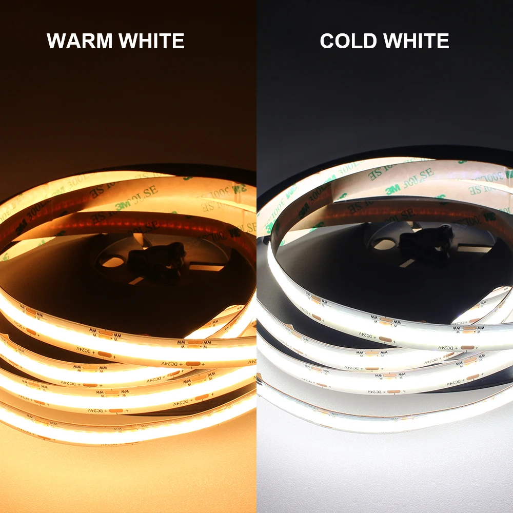 Светодиодная ленсветильник CCT COB, 5 м, 24 В, 2700 светодиодовметр, CRI90, CCT, регулируемая, 6000K + k, Светодиодная лента высокой яркости без темных точек, линейная с регулируемой яркостью