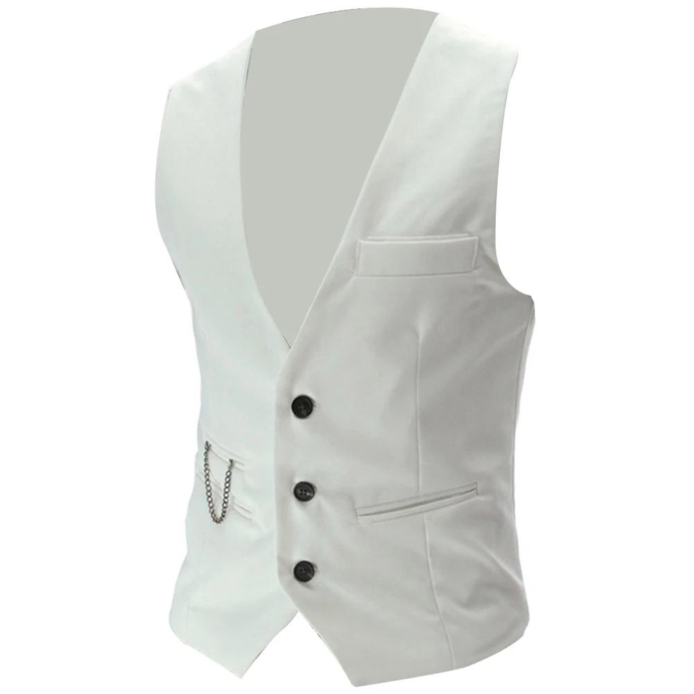 Модные мужские жилеты жилет однотонный Цвет с v-образной горловиной, без рукавов, на кнопках, блейзер размера плюс, официальная, деловая куртка жилеты