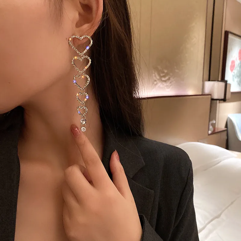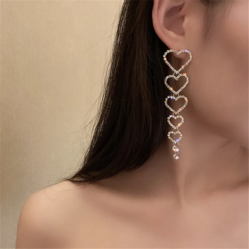 Женские Висячие серьги FYUAN, в форме сердца, с кристаллами, с длинными кисточками, стразы, эффектные ювелирные украшения для подарка