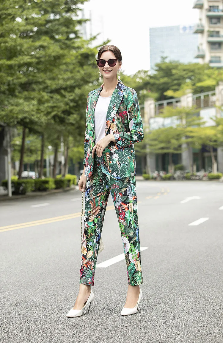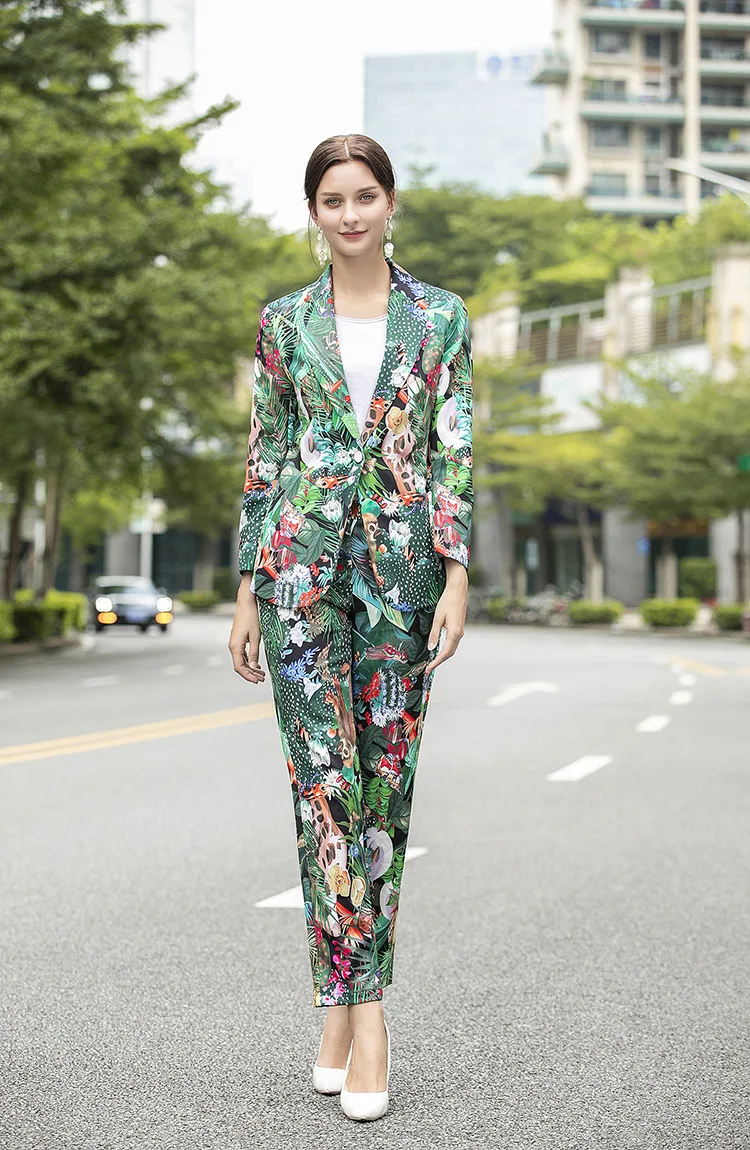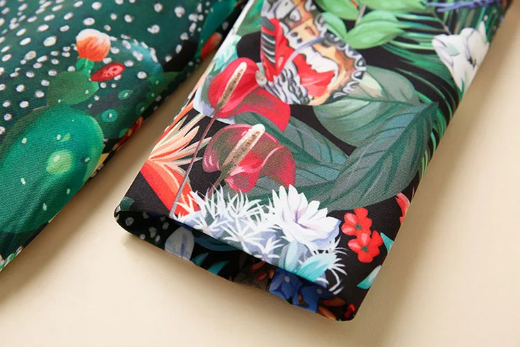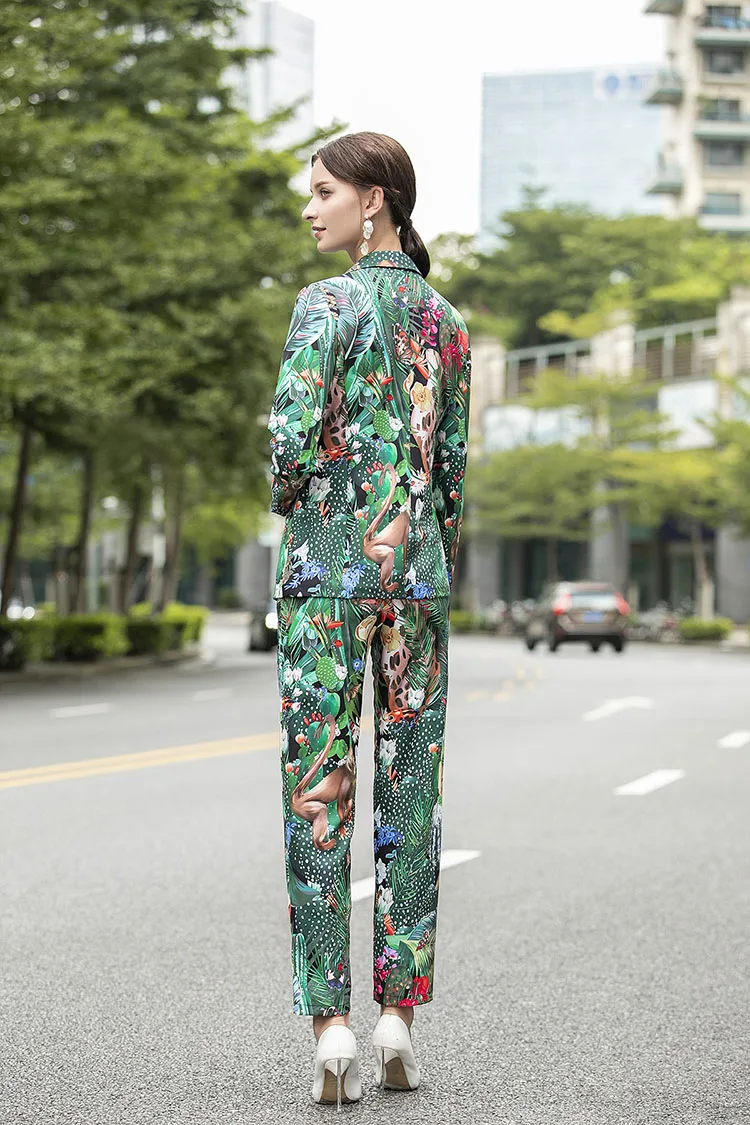Женский Дизайнерский Костюм MoaaYina, комплект из двух предметов: Топ с длинным рукавом и брюки с принтом обезьяны и зеленых листьев и кактусов, весна-осень