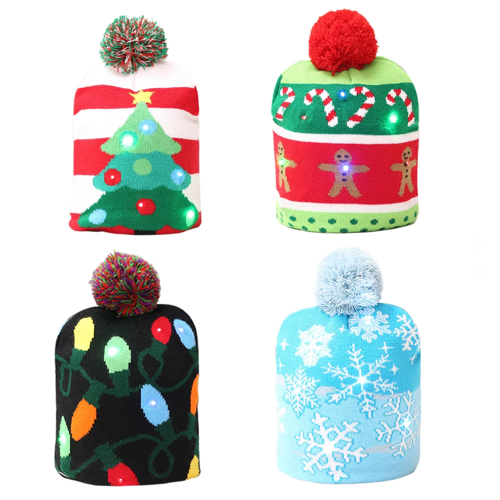 Красочные светящиеся вязаные рождественские шапки, вязаные шапки, р...