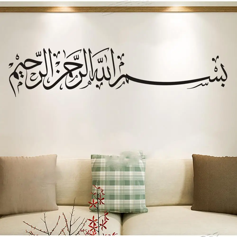 Настенные наклейки фрески Исламская мусульманская арабская каллиграфия Bismillah художественный дизайн Виниловая наклейка для дома Аллах