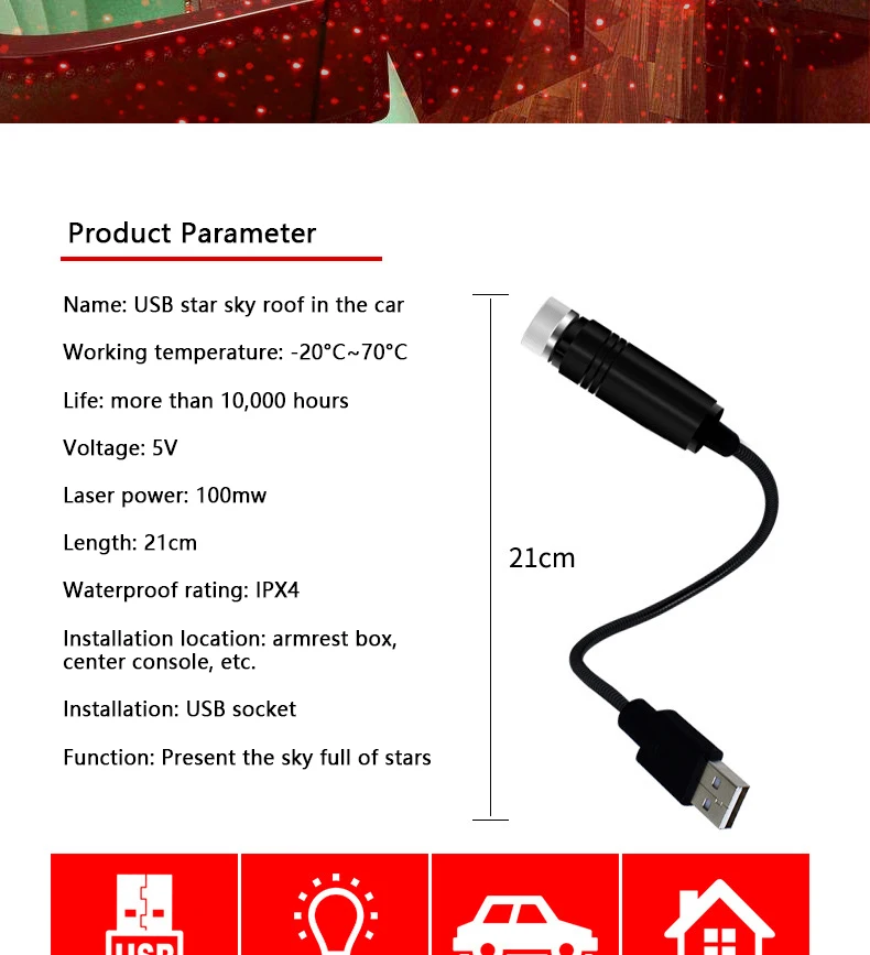 SpecificationMini laser light, easy to use and take little space, car home dual use