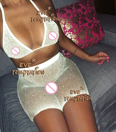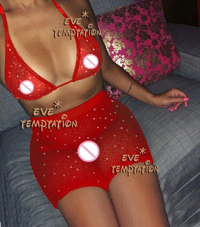 Размера плюс сексуальное нижнее белье с блестящими стразами, бюстгальтер для стриптиза и трусы-оригинальные трусики
