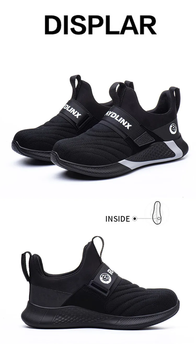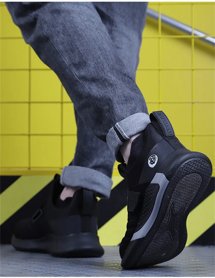Мужские защитные ботинки, черные плетеные ботинки без застежки, легкая защитная обувь с защитой от ударов и проколов 2020