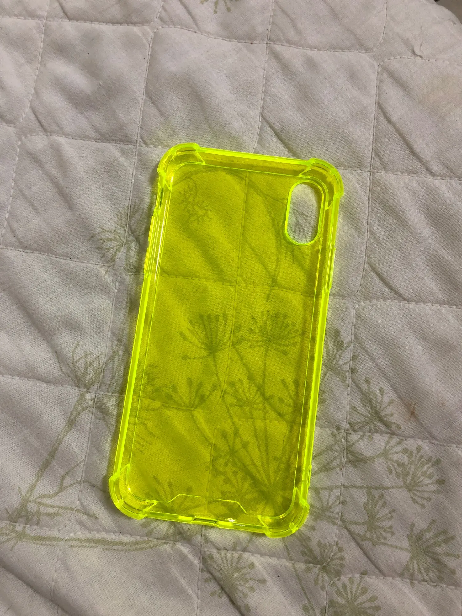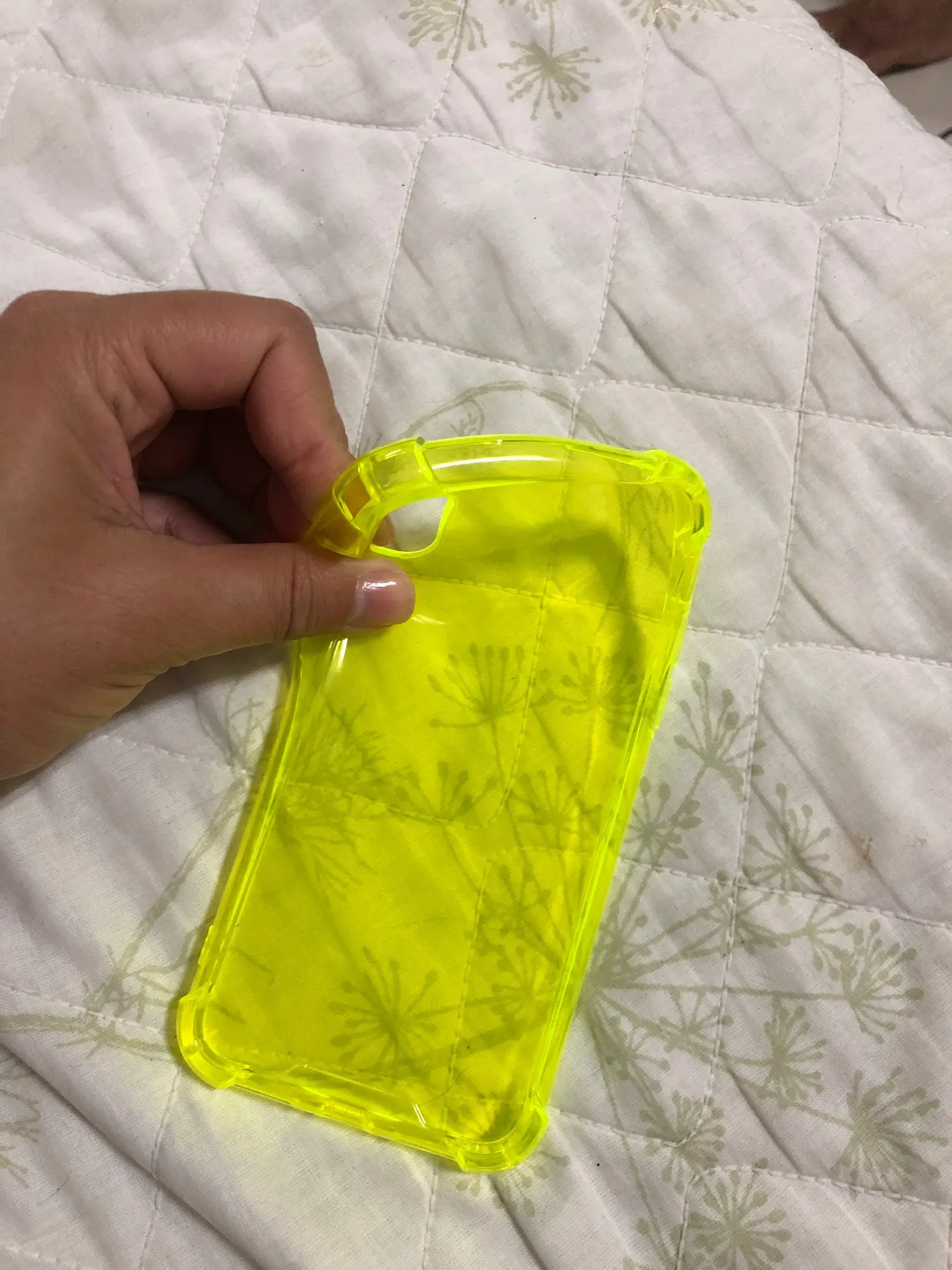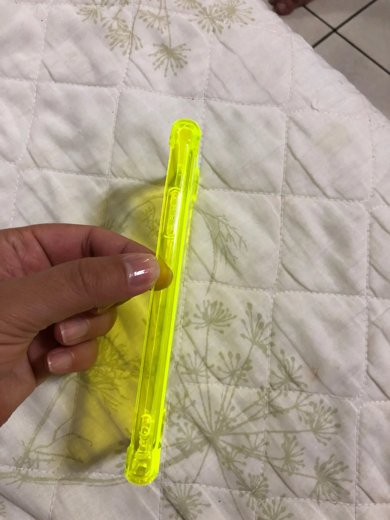 Это очень стойкий случай. Это фосфорно-желтый. Чтобы выглядеть потрясающе. Моя дочь в восторге от своего нового телефонного внешнего вида, и я счастлив, потому что он достаточно защищает от падений. Углы усилены, давая им большую прочность на телефоне.