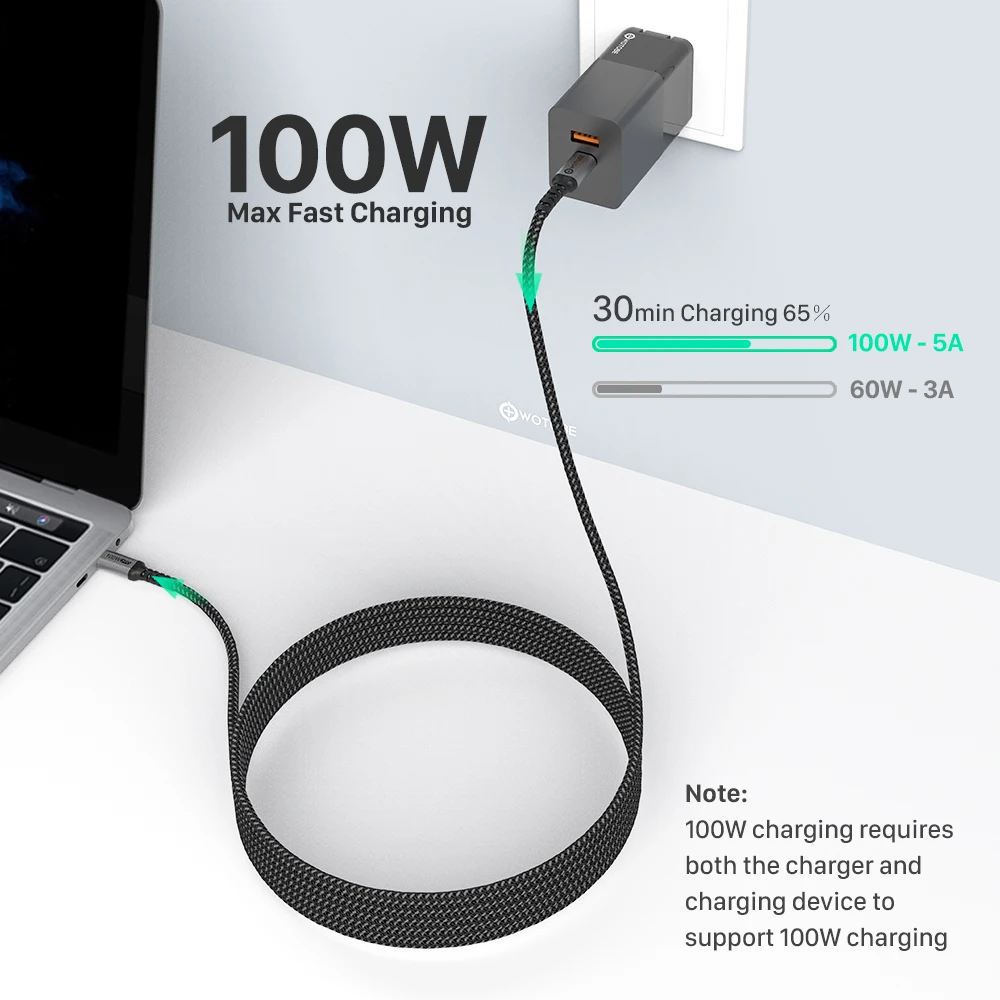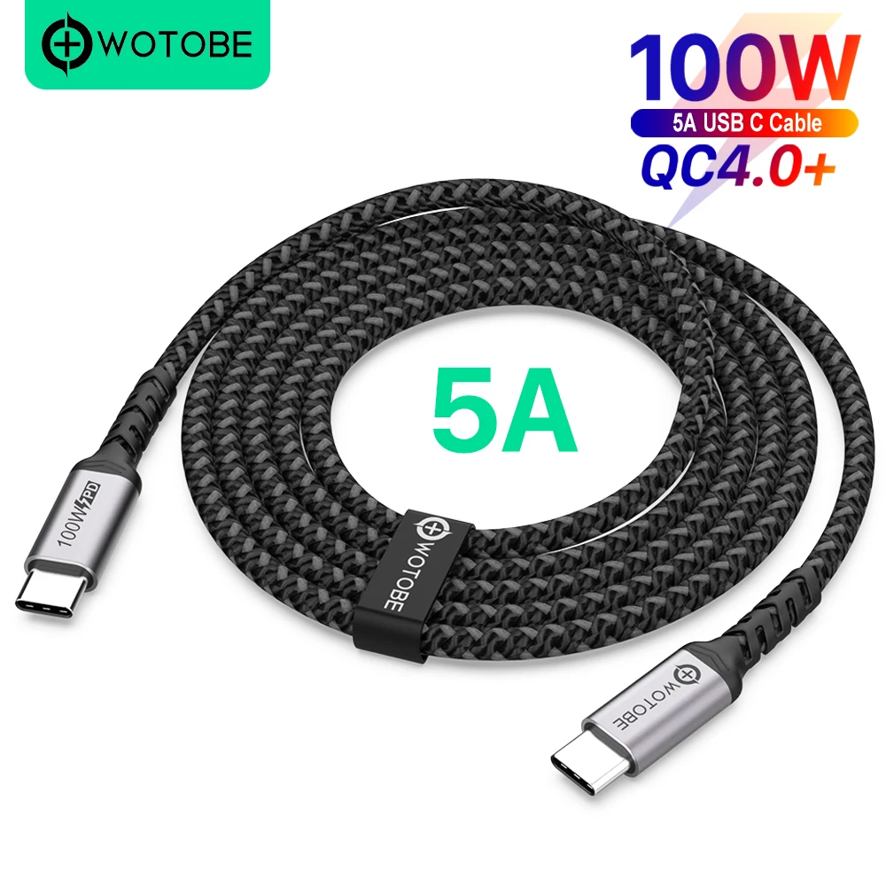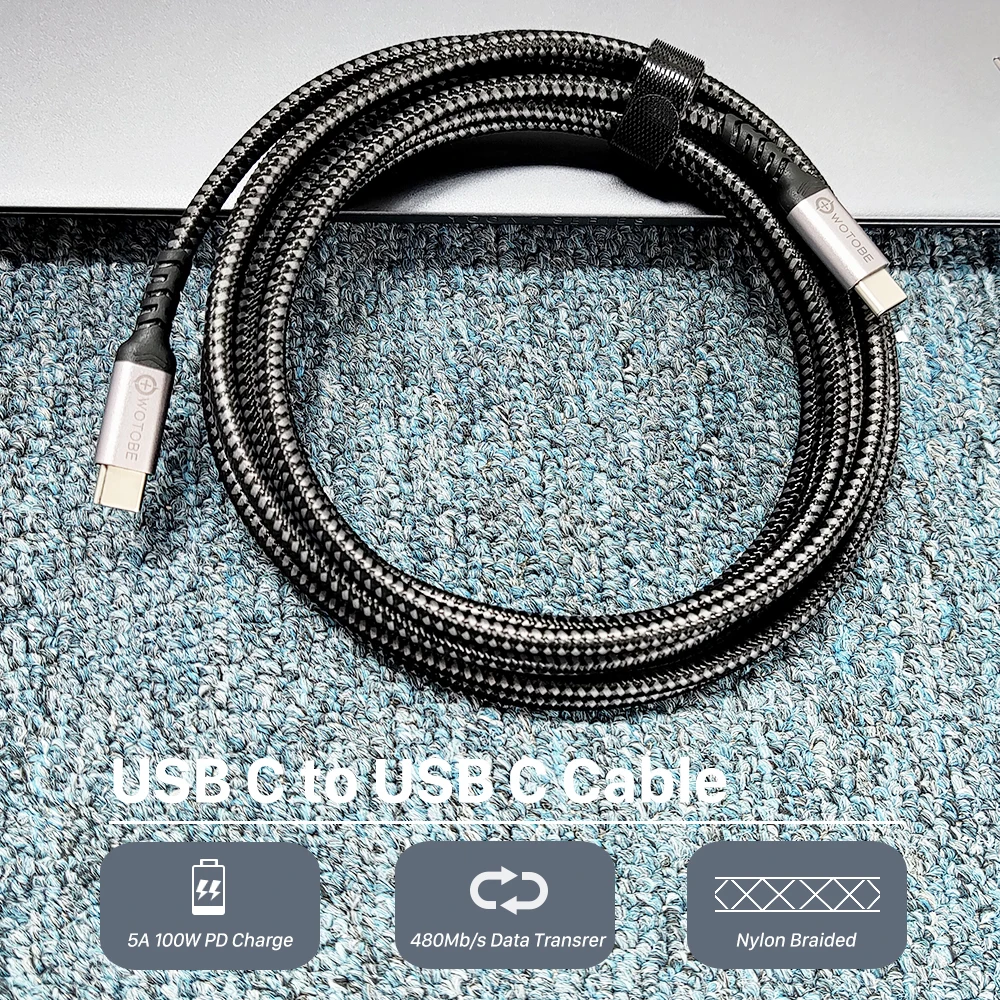 Кабель USB C-USB C, 3 м, 100 Вт, WOTOBE длиной 10 футов, USB Type-C 5A E Mark, быстрая зарядка, нейлоновый плетеный шнур, совместимый с MacBook Pro iPad