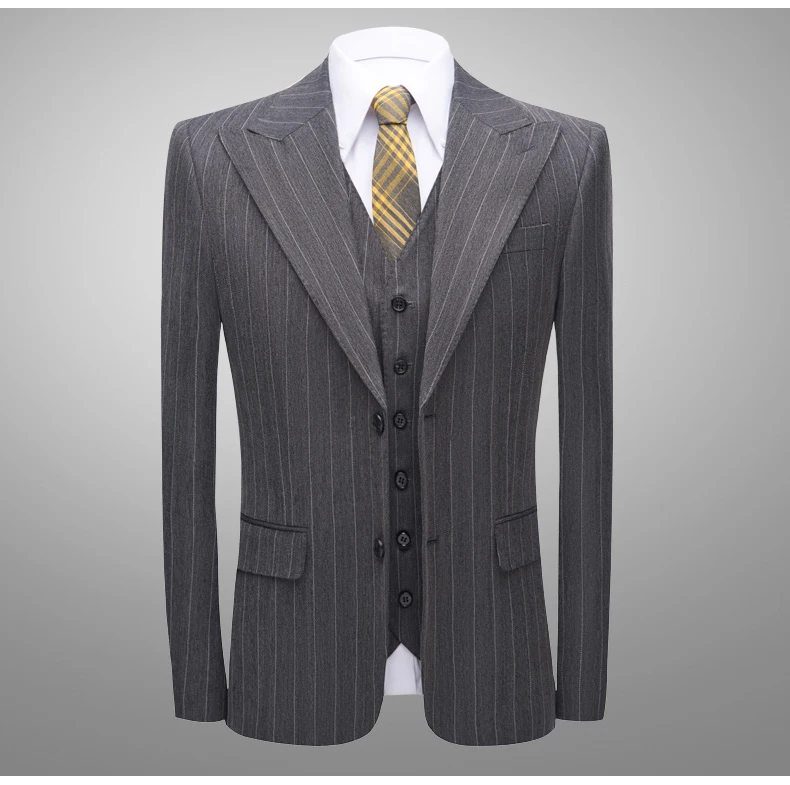TIAN QIONG, серый костюм в полоску для мужчин, Классические мужские свадебные костюмы, костюм из 3 предметов, homme 6XL, мужские офисные деловые костюмы