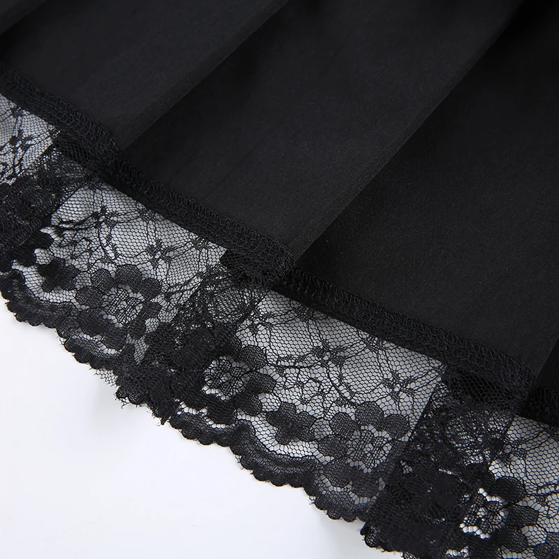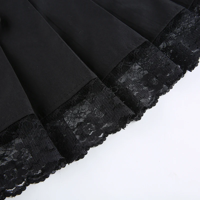 Женская кружевная юбка, трапециевидная мини-юбка составного кроя, на завязках, в готическом стиле