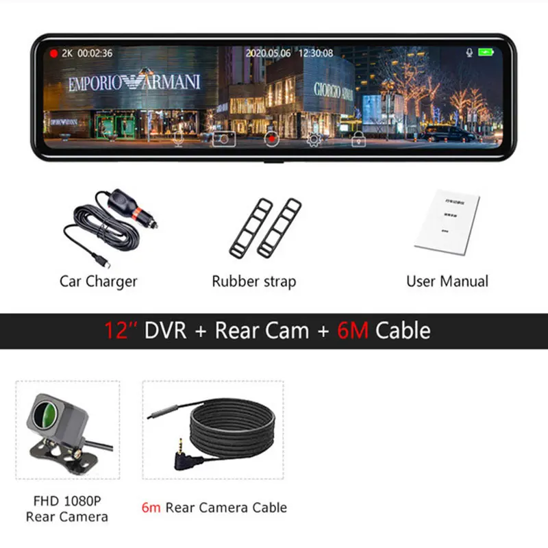 4K Rear View Mirror:12 Inch Full Touch Screen Camera