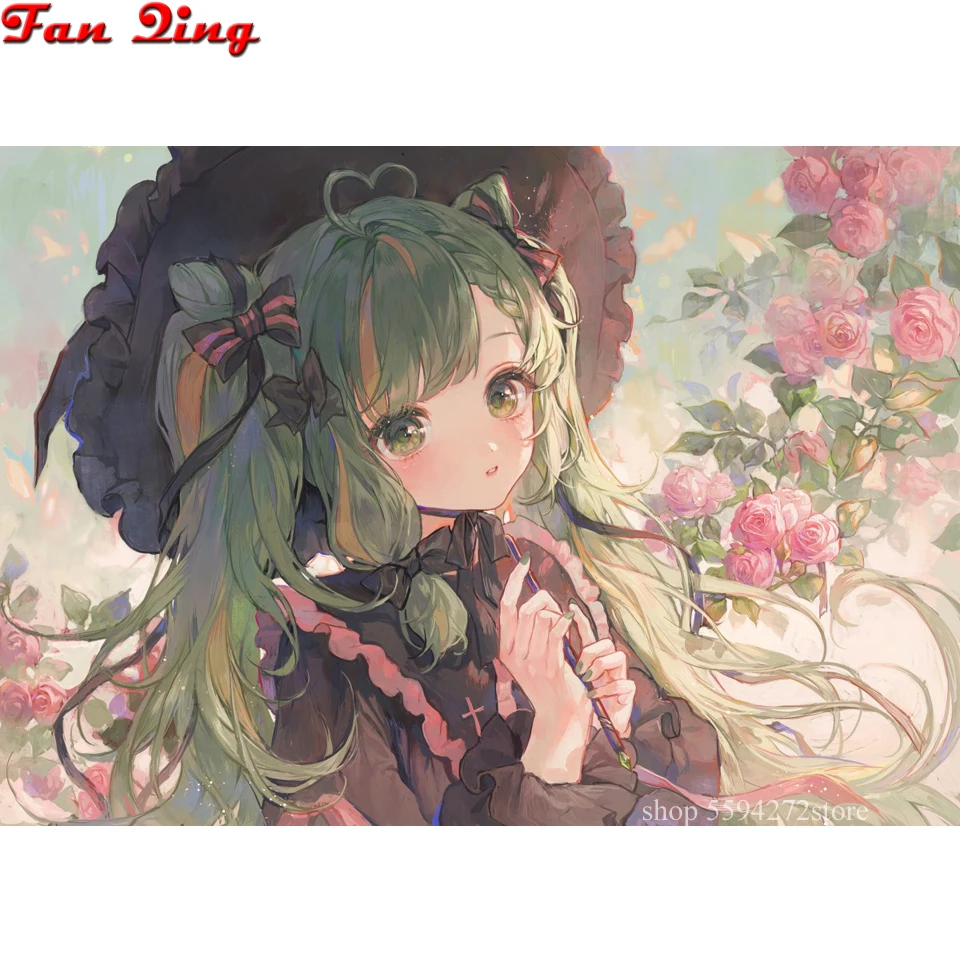 Алмазная мозаика с рисунком девушки из аниме, алмазная живопись сде...