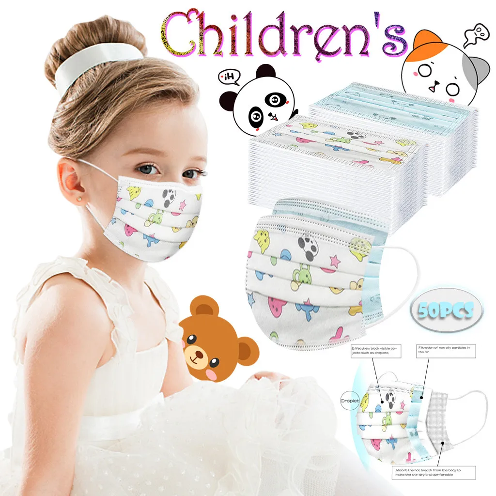 Одноразовые с рисунками для мальчиков и девочек, маски для детей в возрасте от 3-Слои маска для лица, 50 шт в наборе