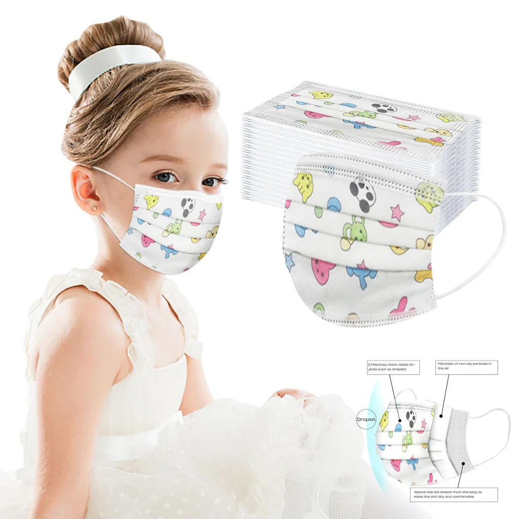 100 шт. одноразовые маски для мальчиков и девочек с принтом для дет...
