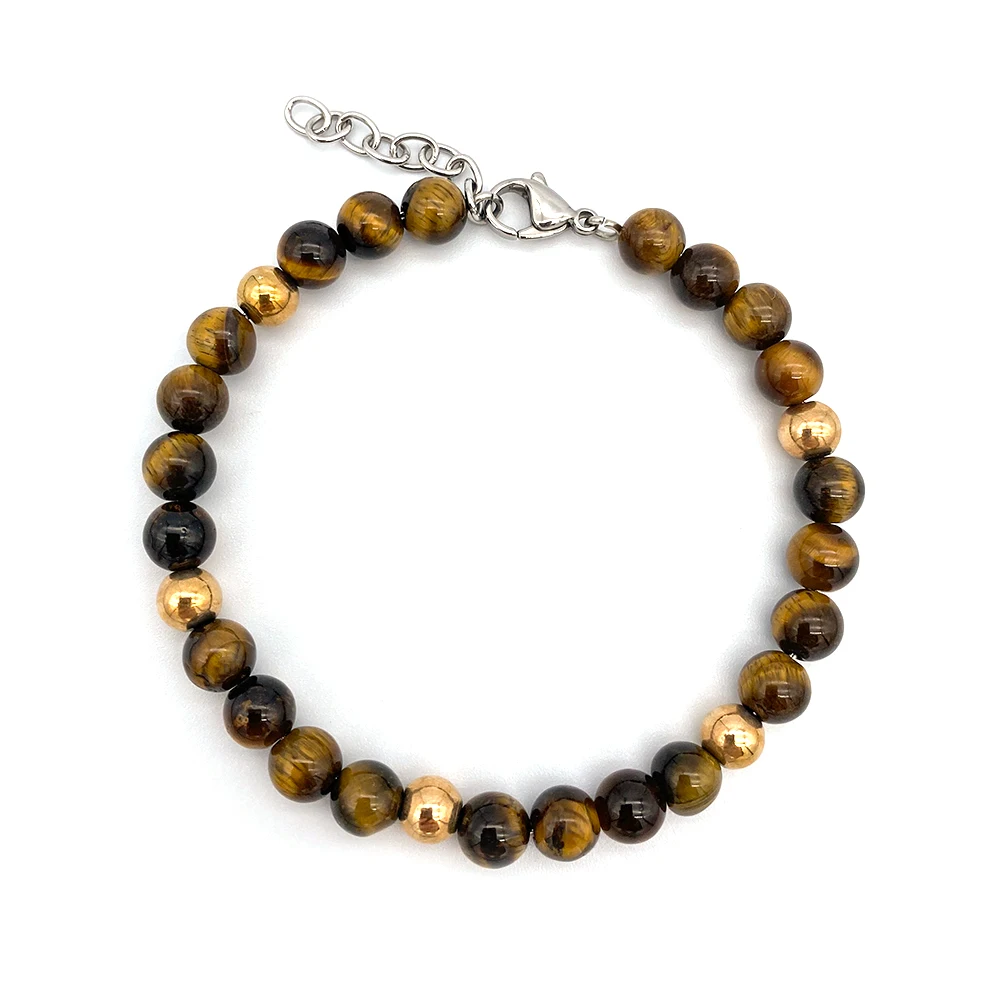 Браслет Runda мужской из бисера, камень тигровый глаз, 17 + 5 см19 + 3 см, нержавеющая сталь 316L, ювелирные изделия ручной работы, Новинка