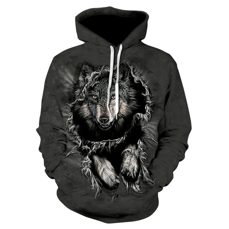 Новинка Осень-зима 2020, толстовка с капюшоном с волком, пуловер в стиле хип-хоп, Повседневная брендовая толстовка с капюшоном с 3d-изображением волка, Женская куртка