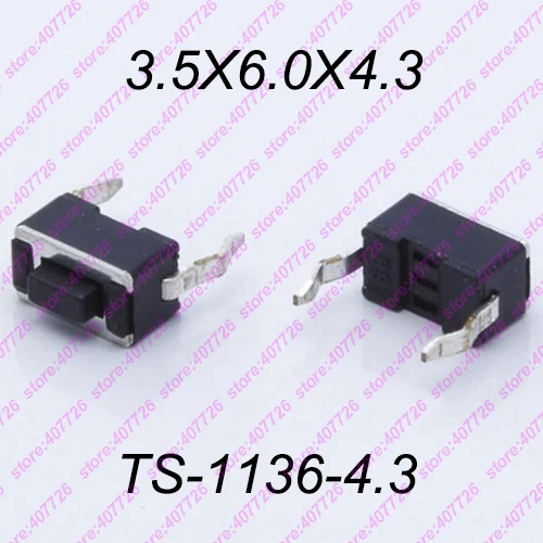 50 шт. микро переключатель черный кнопочный переключатель моментальный тактовый переключатель 3X6X 5 мм4,3 мм DIP SMT 2Pin 260GF Кнопка питания