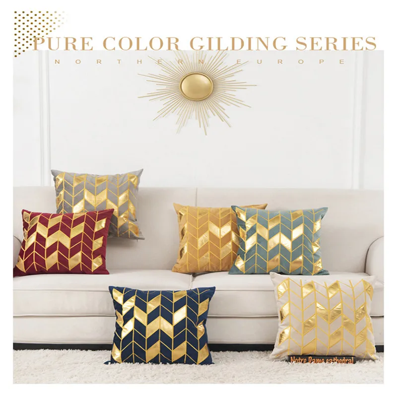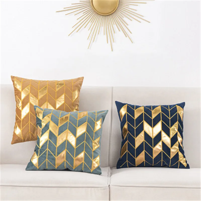 Роскошная Бархатная подушка с золотым бронзовым покрытием, наволочка для подушки с геометрическим рисунком, декоративный чехол для домашнего дивана на новый год
