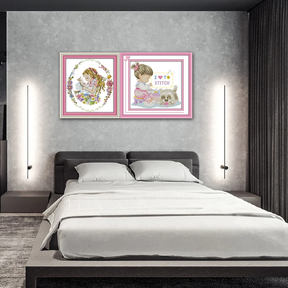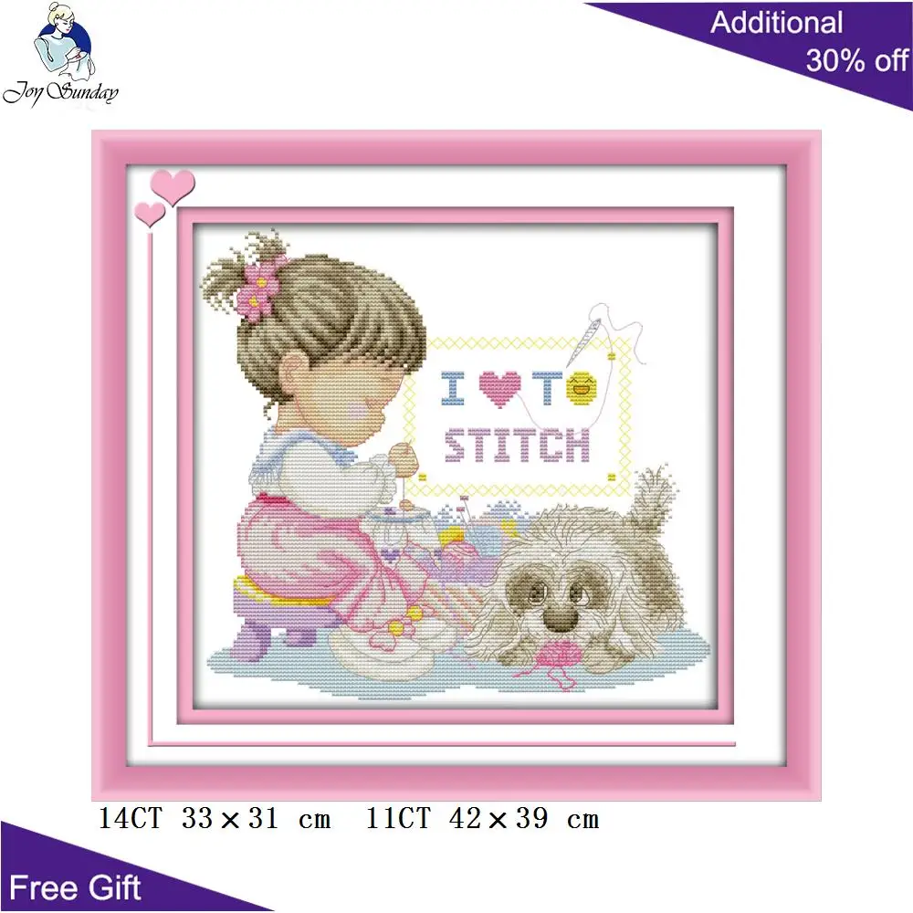 Joy Sunday милая девушка домашний декор C739(1)C740(2) 14CT 11CT Счетный штамп I Love вышивка крестиком Набор для вышивки крестиком