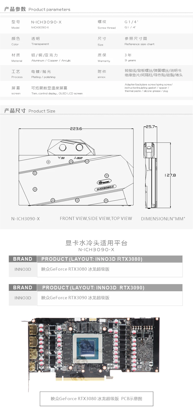 Медный водяной блок Bykski для Inno3D RTX 3080 3090 ICHILL X4 IceDragon Super Edition GAMING X3 TWIN X2 GPUвидеокарта