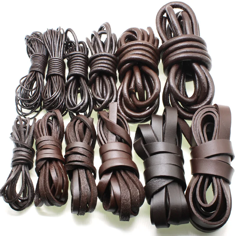 Шнур из натуральной кожи для украшений сделай сам, круглый плоский шнур из натуральной кожи 1,5, 2 метра, 3, 4, 5, 6, 8 мм, для самостоятельного изготовления ожерелий, браслетов, ювелирных изделий