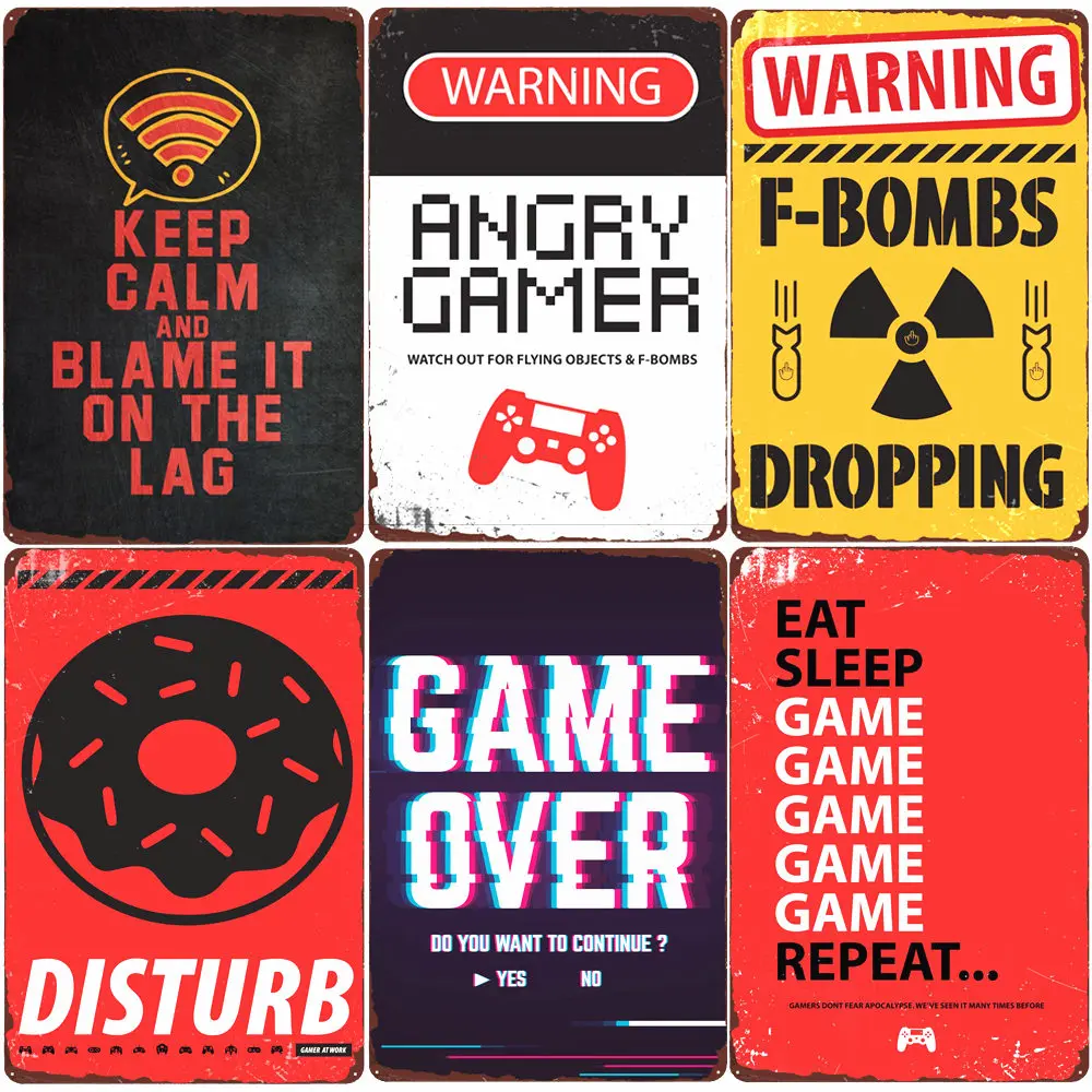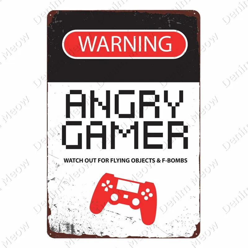 Предупреждение Angry Gamer винтажная жестяная вывеска игровой Повтор постер клуб домашний декор для спальни еда Спящая игра забавные наклейки на стены налет N379