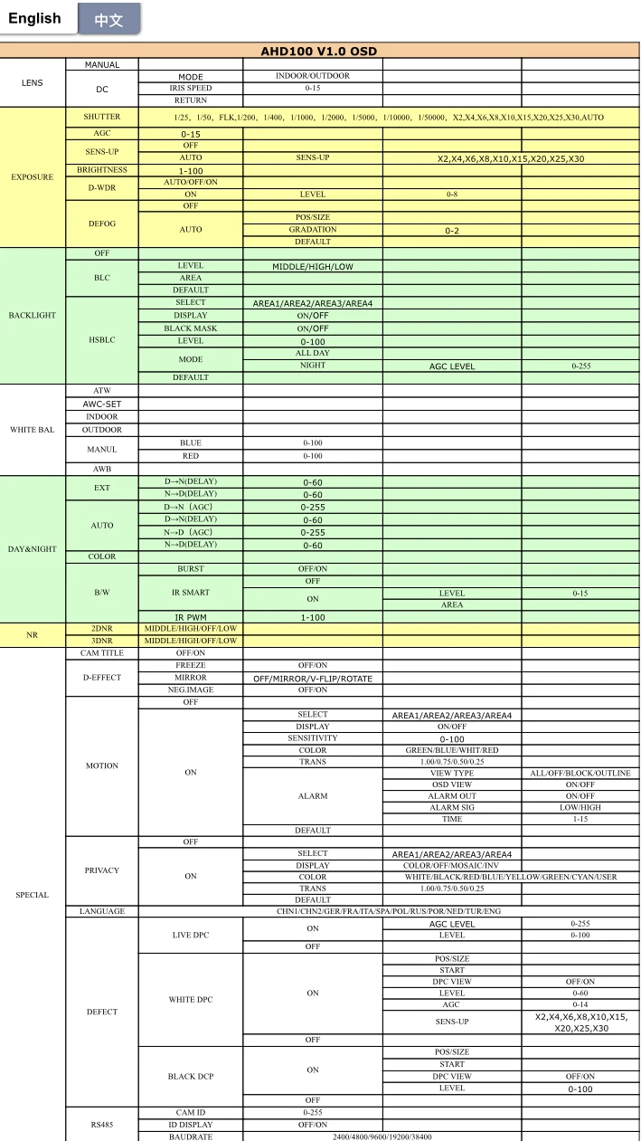 Эта камера IMX 323 не имеет функции OSD из меню XVI или видеорегистратора. Очень вводящая в заблуждение и обманывающая реклама, чтобы исключить эту информацию. Настройки яркости/контрастности/и т. д. должны быть установлены из положения камеры с помощью дополнительного монитора с 4-кнопочным кабелем OSD. Нет другого пути. Установить параметры камеры с помощью этой старой системы практически невозможно. IMX 323-бесполезная и устаревшая технология. Многие продавцы знают эту камеру и не упоминают об этой очевидной для пользователей проблеме. Магазин перекладывает вину на покупателя, поэтому покупайте камеру Лучше в другом месте. Однако: IMX307 имеет мин. 0,0001 люкс и отображается на экране с управлением XVI (UTC). Я предлагаю «CS lens» для этой камеры, чтобы обеспечить лучший свет и более четкое изображение. Я не рекомендую этого продавца, который скрывает факты и умный поворот слов, таких как «cable osd»