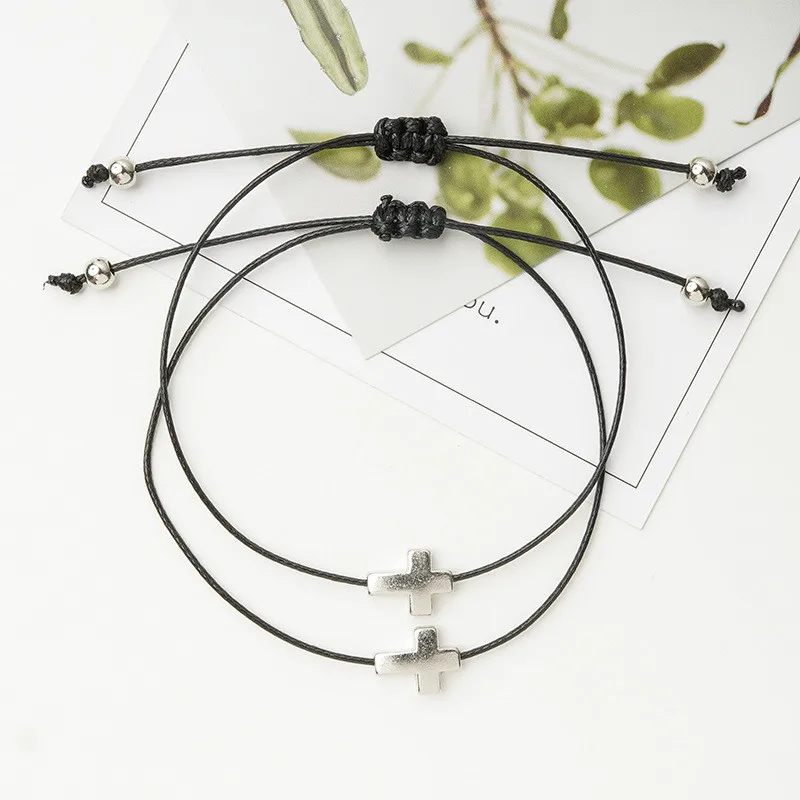 Мода 2020 2 шт.компл. браслеты с крестообразной подвеской один для вас один для меня Черная Плетеная пара браслет для мужчин женщин Wish Card