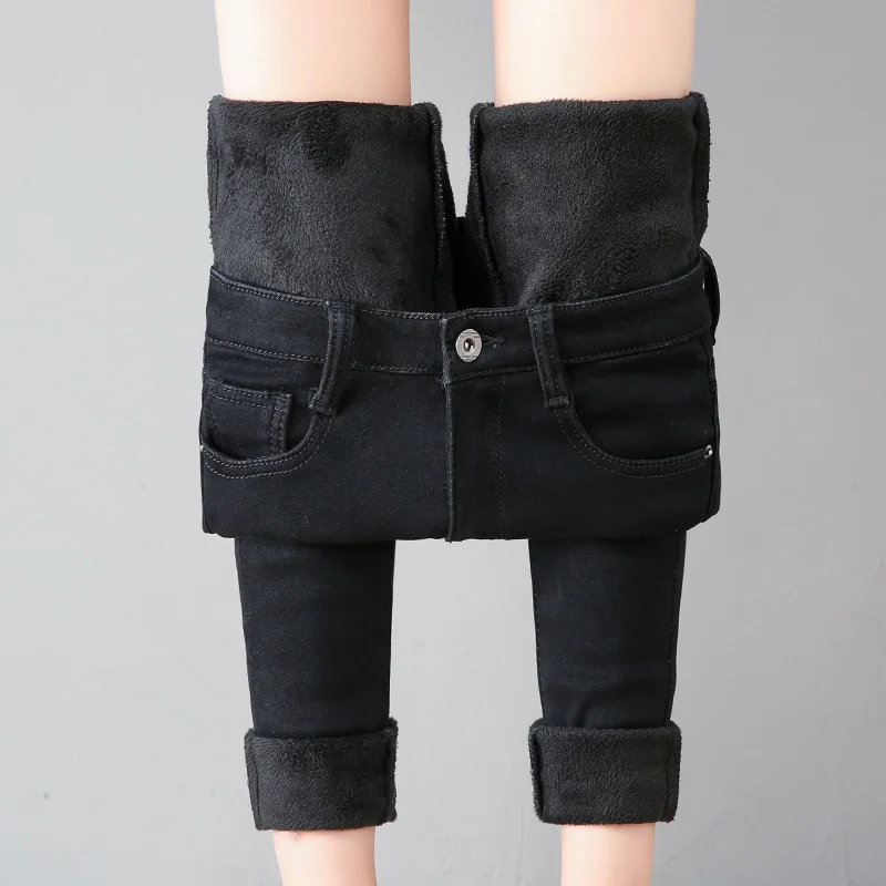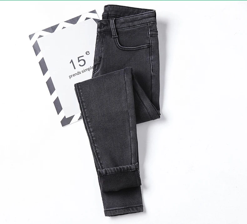 Джинсы женские зимние, черные, синие, серые, с высокой талией, эластичные, большие размеры 40