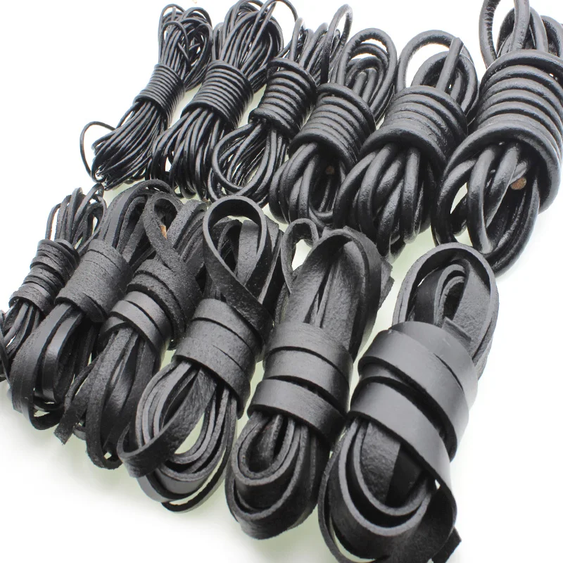 Шнур из натуральной кожи для украшений, черный шнур из круглой плоской кожи для ожерелья и браслетов, комплектующие для изготовления ювелирных изделий, 2 м, 1,5, 3, 4, 5, 6, 8 мм