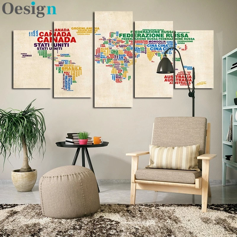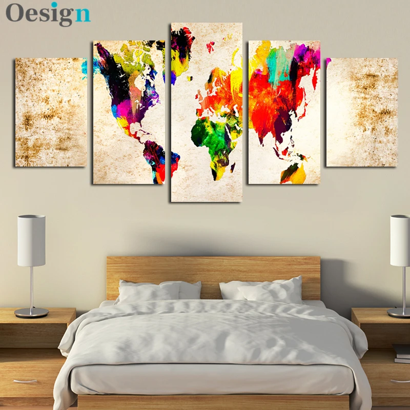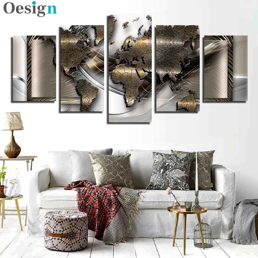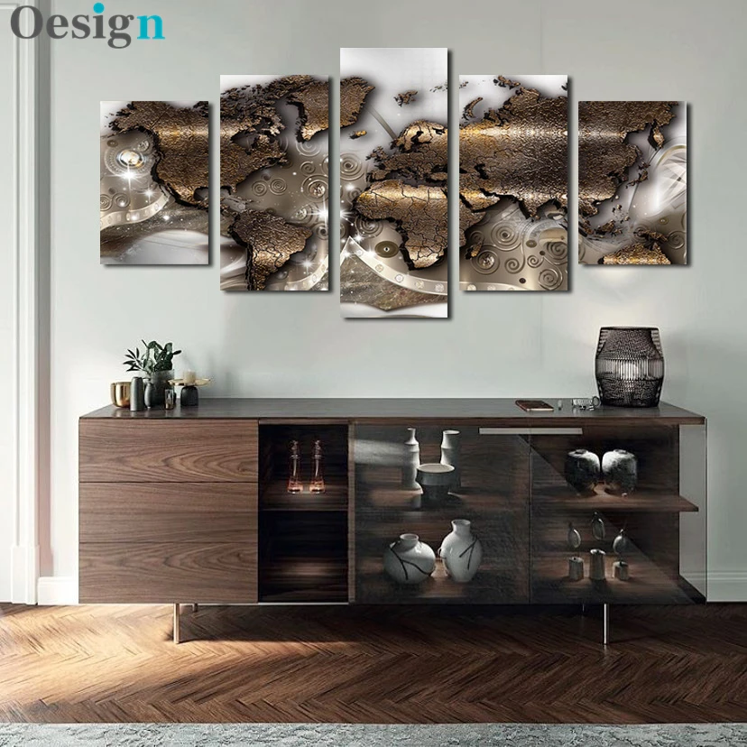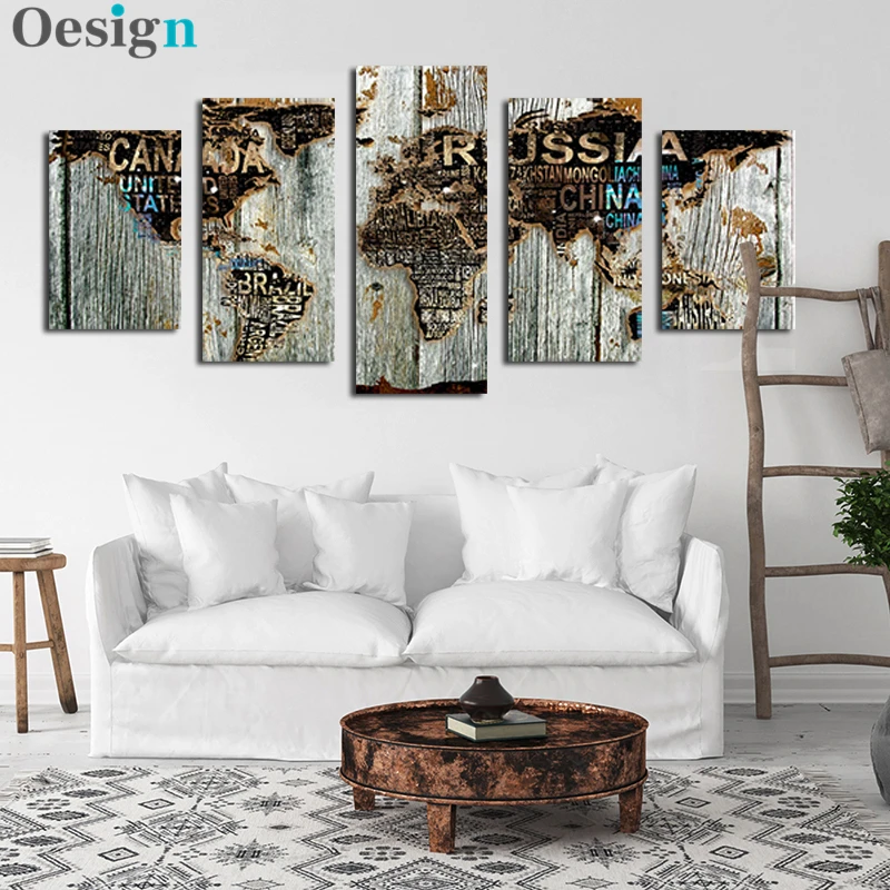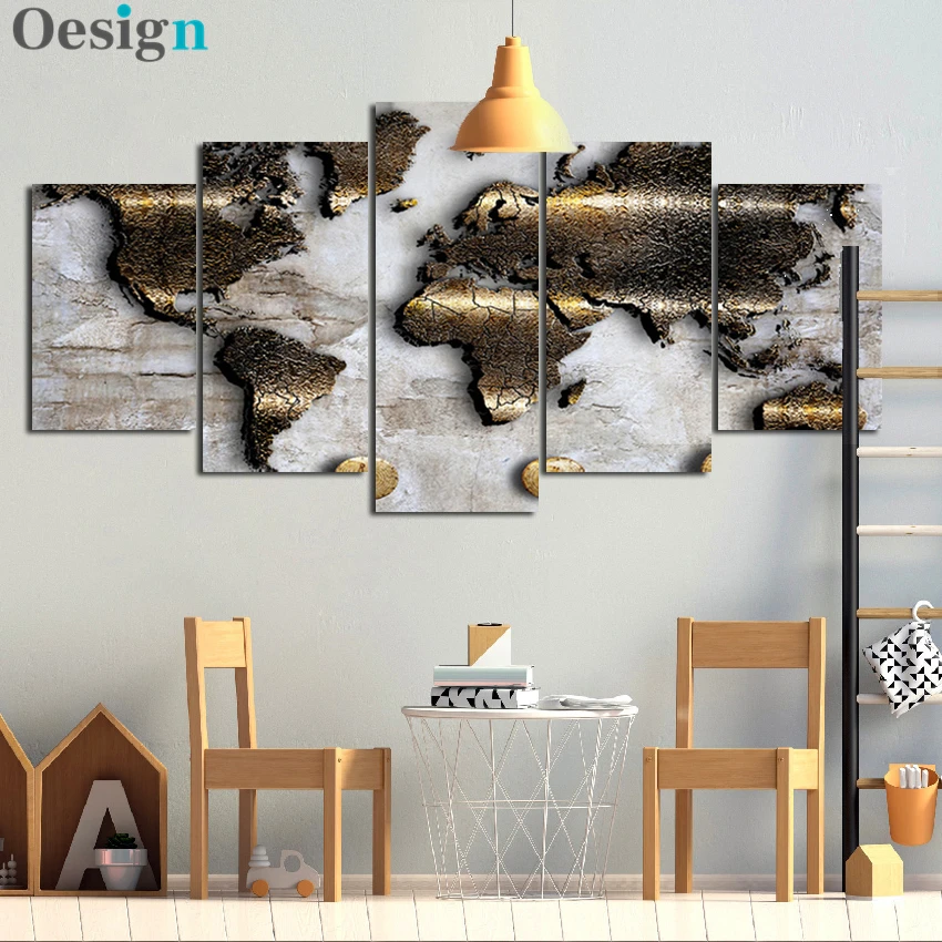 Абстрактная живопись на холсте 5 шт. World Настенная картина со стилизованной картой мира Печать на холсте Wall Art Home Decor Гостиная для гостиничного Холла украшения