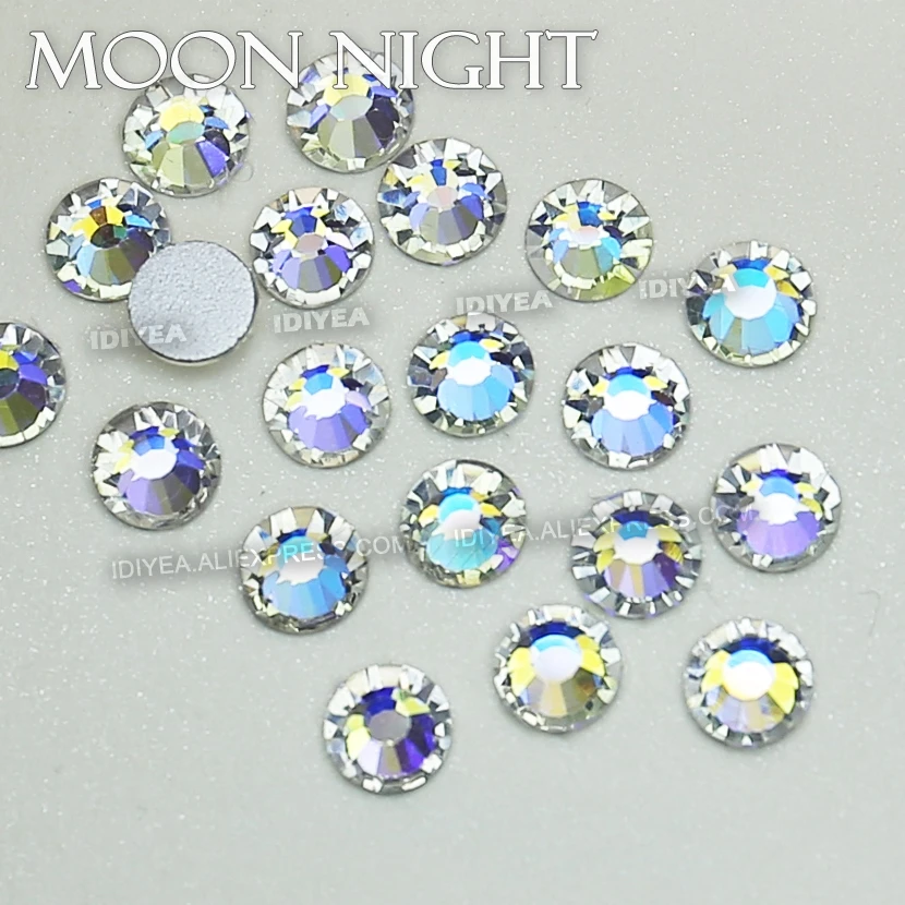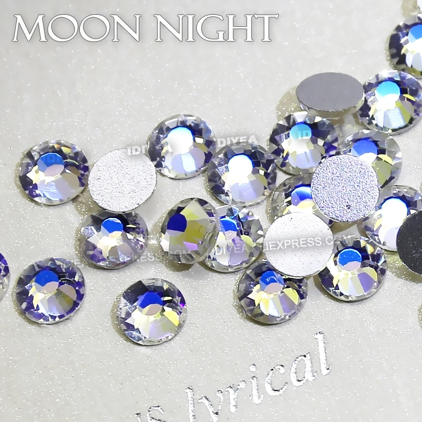 Красивая Лунная Ночная ss3-ss30, Стразы без горячей фиксации, хрустальные блестящие стразы с плоской задней частью, стеклянные камни для самостоятельного украшения ногтей, свадьбы