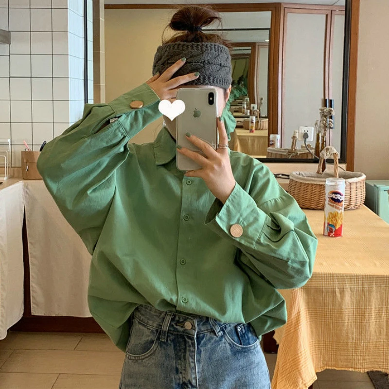Женские весенне-осенние зеленые рубашки EBAIHUI, Свободные повседне...