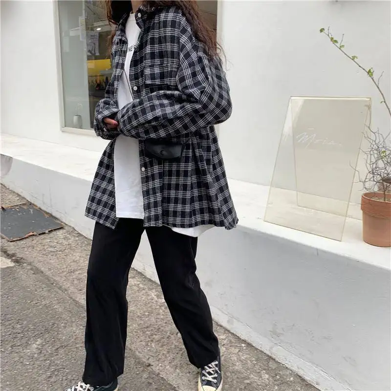 Рубашка женская в клетку, базовая Повседневная Блузка в Корейском стиле, универсальная модная уличная одежда в стиле Харадзюку, Ulzzang