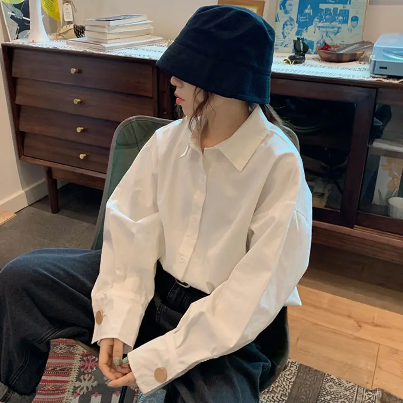Женская рубашка с длинным рукавом HOUZHOU, белая винтажная уличная ...