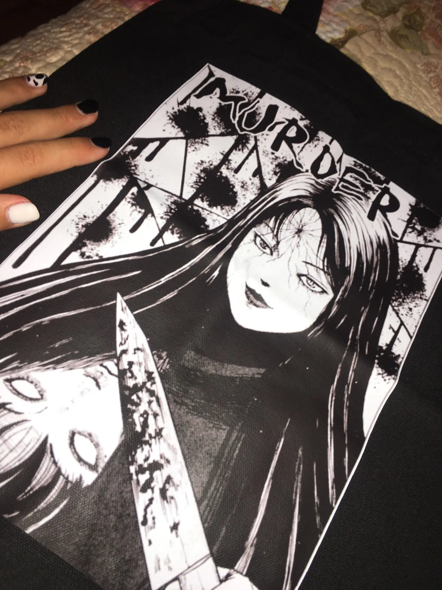 Холщовая Сумка с принтом Tomie в готическом стиле, повседневная вме...