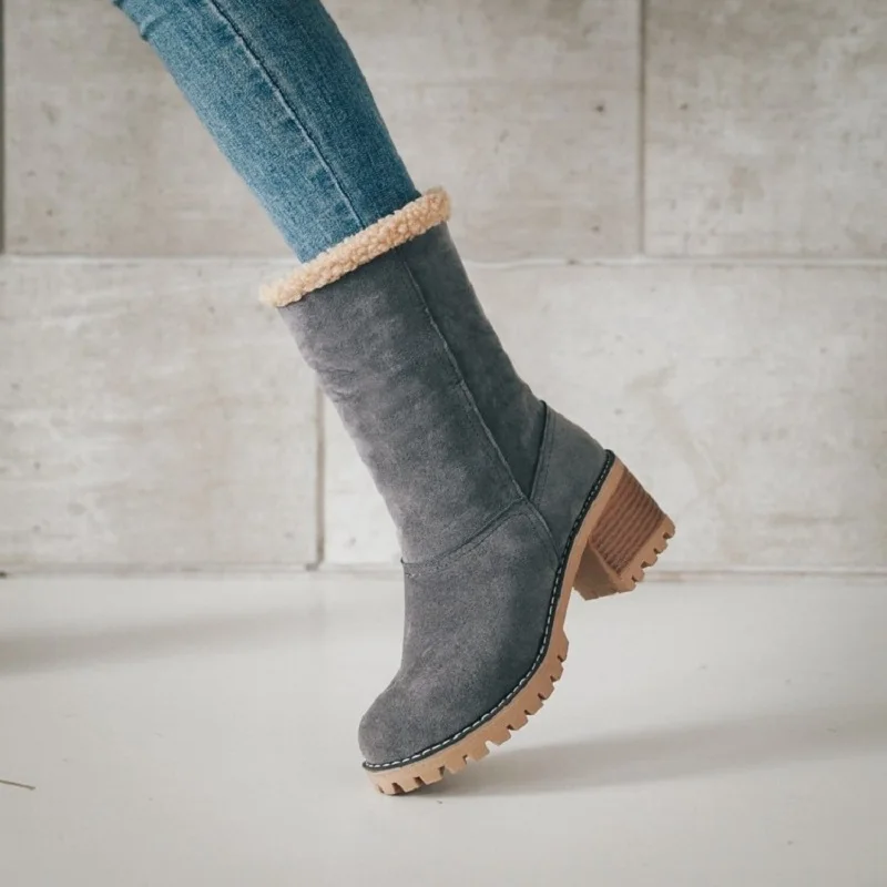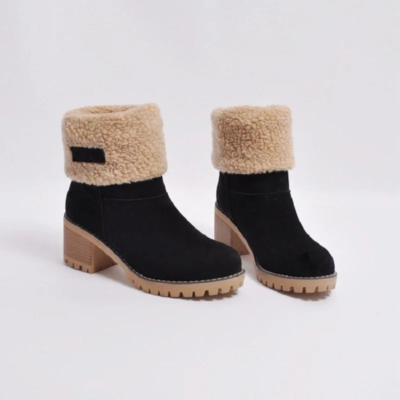 Женские зимние теплые ботинки на высоком каблуке 5 см, меховые фетровые российские джинсы, ботильоны на низком блочном каблуке с плюшевой подкладкой, женские ботинки